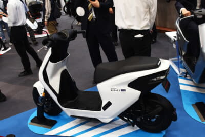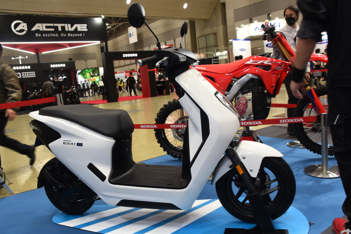 2023年のモーターサイクルショーでは、ホンダが国内初公開となる2モデルを発表。東京ショーでもホンダモーターサイクルジャパンの室岡克博代表取締役社長がブースに登壇し、プレスブリーフィングも行われた。その国内初登場の2台のうちの1台が、2023年11月にイタリア・ミラノで開催されたEICMA 2022(ミラノショー)で初公開された「EM1 e:(イーエムワン イー)」である。