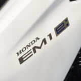 現在ホンダが国内に投入しているモバイルパワーパック採用の電動バイクといえば「BENLY e:」、「GYRO e:」、「GYRO CANOPY e:」の3種。これらe:ビジネスバイクシリーズを法人向けに販売している。こちらはバッテリーモバイルパワーパック2個を直列で接続して走行をするものだが、今回の「EM1 e:」はモバイルパワーパックを一個のみ使用するというものとなり、車両内にはバッテリーを一個搭載するだけのスペースしかない。原付一種(第一種原動機付自転車)相当の定格出力で、最高速度は45km/h、1回のチャージで40km以上の航続距離となる(WMTCモード/欧州仕様車)。