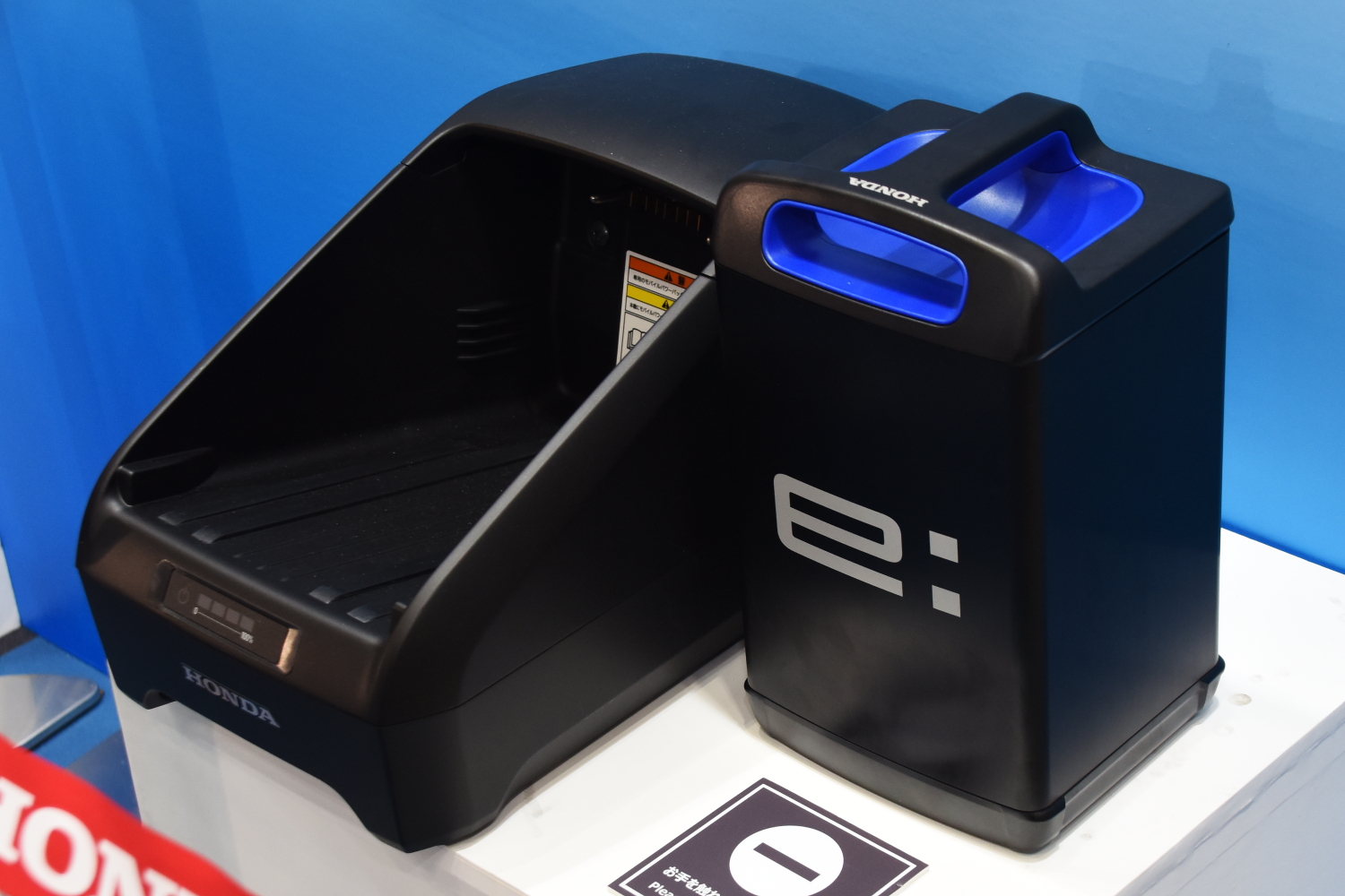 市販予定車として登場したEM1 e:は、ホンダの交換式バッテリー「Honda Mobile Power Pack e:(モバイルパワーパック)」を駆動動力として使用する電動スクーターである。モバイルパワーパックが空になっても、充電済みのモバイルパワーパックに交換することで、充電のための待ち時間を要することなく走行が可能となるのが特徴だ。