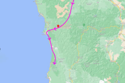 到着が夕方だったので、初日はいつものとおりに焚き火をして夕食を食べて就寝した。翌日、起きてみると空模様が怪しい。その日はクレセントシティのコインランドリーで洗濯をして、近くのトレイルヘッドからハイキングをする計画を立てていた。木と手袋は濡れるのが嫌だったのでクルマの中にしまったが、斧とトングとBBQグリルは出しっぱなしにしてしまった。