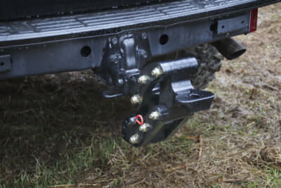 またリアにおいてもバンパーの下側をカットし、武骨な雰囲気を醸し出す。ヒッチメンバーは覇王ホイール製の調整式を取り付けた。