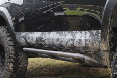 もちろん平日は仕事なだけに週末だけの作業とはなったが、それでも1カ月という短期間で完成まで漕ぎ着けることができた。ちなみに純正バンパーの下側をカットし、このアイアンバンパーを装着。こうしてインパクトあるショートバンパーが実現した。