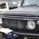 ブラックのボディにカーボン柄などを巧みにコンビネーションさせ、シティオフローダーとしてコーディネイトしたジムニー シエラ・オーナーの“Sola”サン。外装はイジっていない場所がないほど、やり切ったスタイルとなっているが、その力強いフォルムは見た目だけでなく、しっかりとオフロード走行を楽しめる足に仕上がっているのも見どころ。