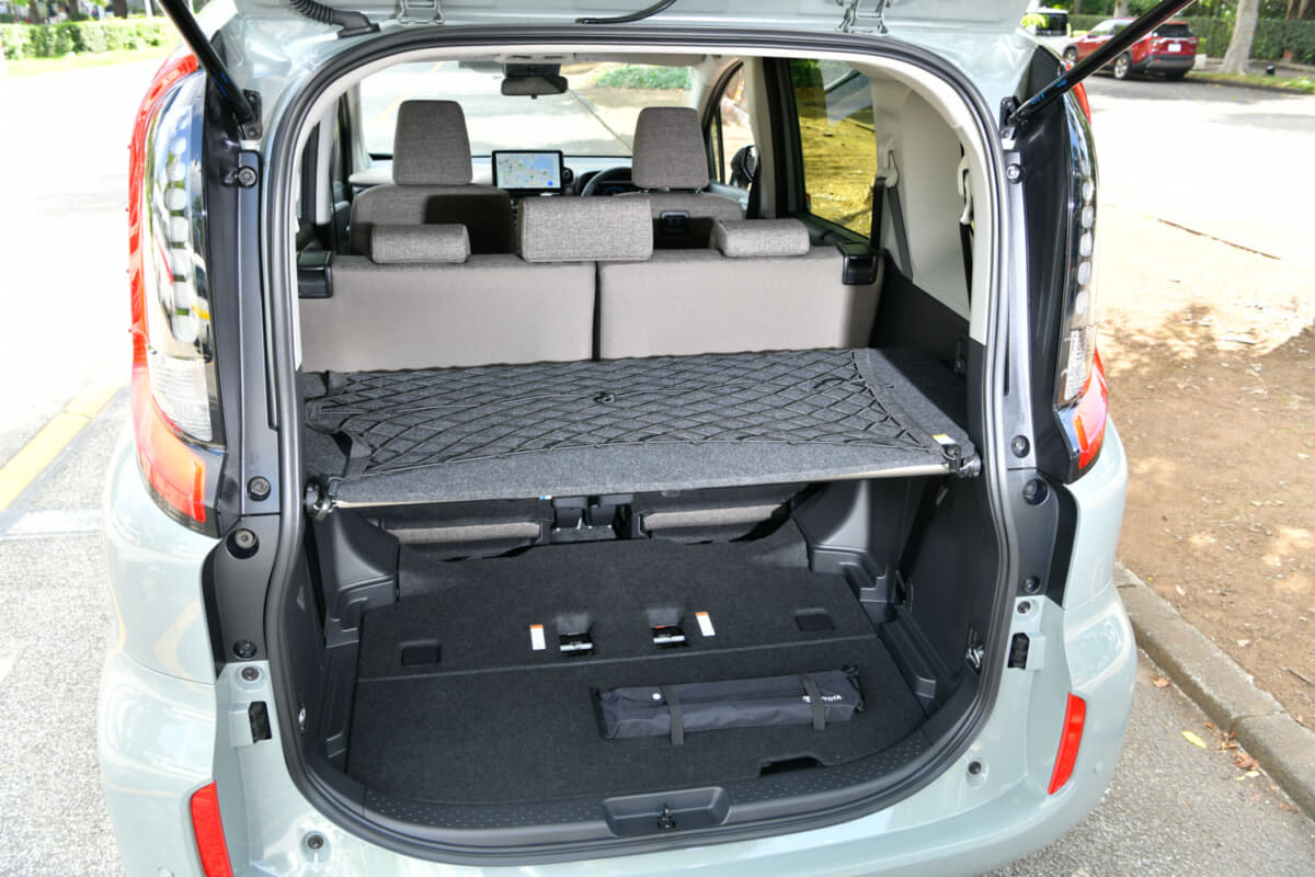 だが、スペーシア ベースには外部電源ユニットなる、家や電源付きキャンプサイトなどで使えるAC100V/1500Wコンセントが純正アクセサリーとして用意されている。ハイブリッドやPHEVのように、車載のバッテリーから電源を供給するわけではないものの、家の駐車場や電源のあるキャンプサイトなどで、スマートに車内に電源を引き込むことができるから便利だ(リアバンパー部分に外部電源の接続端子があり、ウインドウやドアを少し開ける必要なし)。