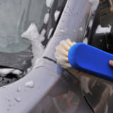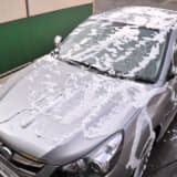 洗車の基本は上から下へ。つまり、ルーフ→ウインドウ→ボンネット→トランクまたはリアボディ→ボディサイドの順に、カーシャンプーを使って行う。筆者はカーシャンプーの泡立ちを助ける効果があり、ボディに優しいフワフワなクロスを使っているが、柔らかめのスポンジでも可(固めのスポンジだと、細部を洗いにくいので不可)。