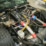 それはさておきスカイライン・ターボです。ベースとなったのは1980年に登場した6代目=R30系の2ドアハードトップ、2000RSでしたが、モノコックの一部を流用しながらも前後に鋼管で組んだパイプフレームを組みつけ、海外ラリー用に開発した2L直4ツインカムをエアリサーチ製のターボで武装したLZ20Bターボを搭載。スカイライン2000RSハードトップに似たシルエットの前後カウルを組みつけていました。