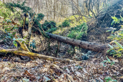 そこで土地の所有者から聞いた話を頼りに、沢の向かいにある山から湧水を引こうと探索に出た。