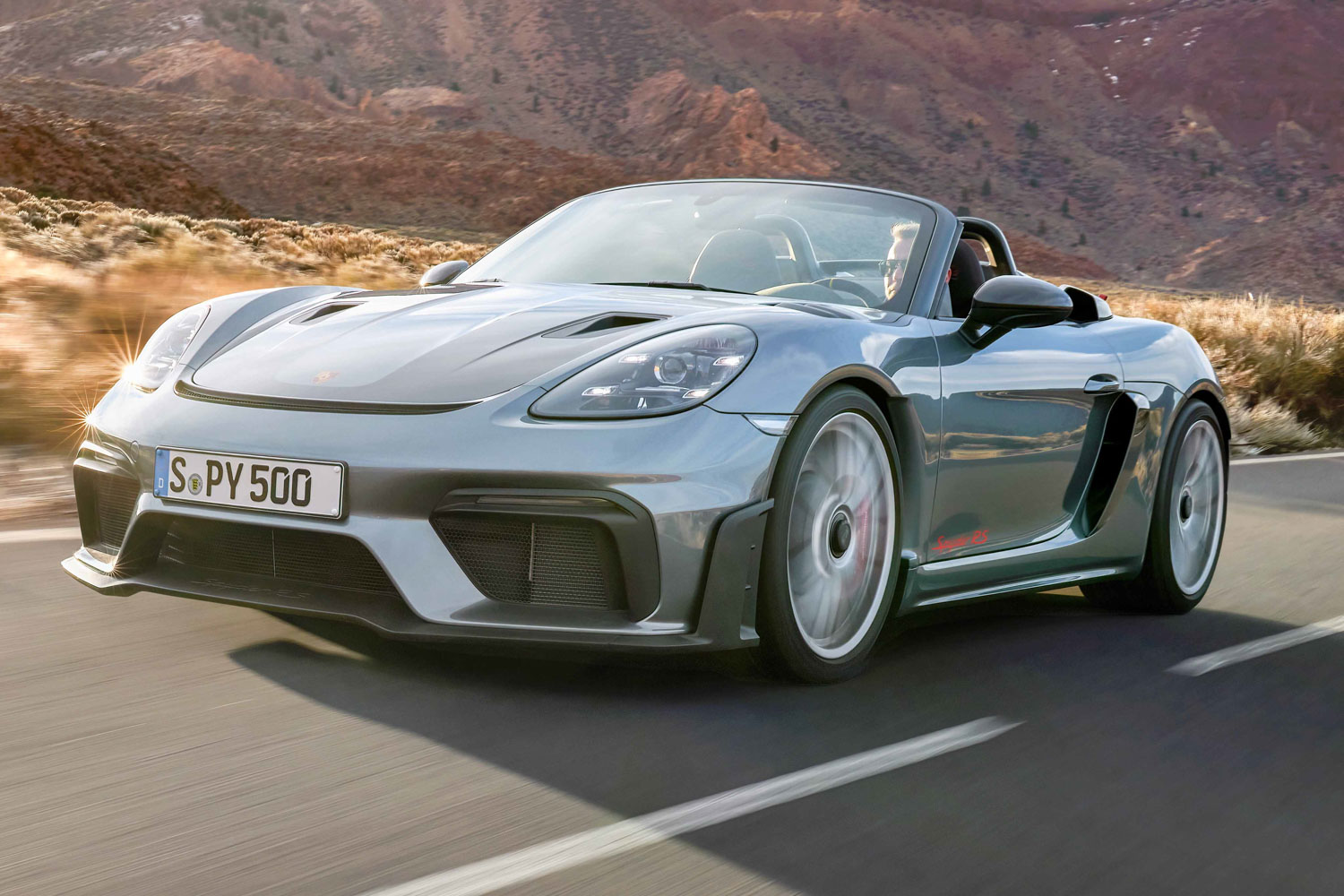 これらにより、高いステアリング精度と俊敏かつニュートラルなハンドリングによる、鋭いシャシー挙動を実現するという。また、718ケイマンGT4 RSよりスプリングレートとダンパーレートを低くすることで、リラックスして運転できるコンバーチブル向けのセットアップが取り入れられていることも、「オープントップでのドライビングプレジャーを新たな次元に引き上げる」とうたうモデルにふさわしい。車高、キャンバー、トレッド、スタビライザーはすべて個別調整が可能だ。