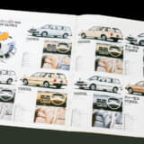 ユーザーに寄り添ったという意味では、内装の造りや装備もそう。運転席まわりは「乗用車感覚のインストルメントパネルを用意」(カタログより)と快適性を意識した点をアピールしつつ、クォーツ時計、シートアンダートレイやドアポケットをはじめ、「水平に近くリクライニングする」(カタログより)フロントシートなどが採用されている。「ハンドブレーキケース」とは駐車ブレーキレバーのところのトレイ状の部分を指す呼び方だが、そのポケット部分にソフトパッケージのタバコのマールボロが写っているのは時代を感じさせる。