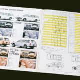 写真のカタログは1983年7月に2ドアが追加された際のサニーADバンのものだが、いかにも社長/部長/係長/新人といった設定のスーツ姿の4人のビジネスマンが登場。その見開きには「仕事一途のおトクな2ドア2シーター、名づけて『ビジネスDX』」と、何ともユーザーに寄り添った(!)コピーも。