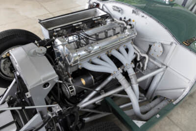 そのXK120をベースとしたコンペティションモデルが「XK120C」、すなわちCタイプである。ジャガーがCタイプを開発した目的はただひとつ、1951年のル・マン24時間レースに初参戦し優勝を果たすこと。そしてその目的は見事に達成することができたのだ。翌1952年はさらにエアロダイアミクスを追求した結果、フロントグリルは小型化されたものの、そのためにエントリーした各車はオーバーヒートに悩み、全車がリタイヤ。2年連続の勝利はならなかった。