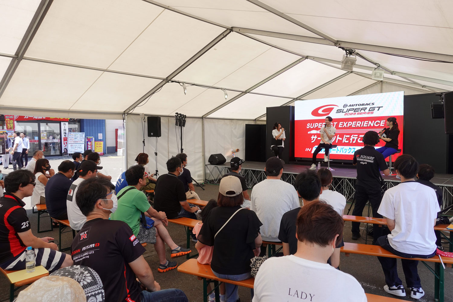 会場内には特設ステージも設けられ、SUPER GTのPRステージやレーシングドライバーによるトークショーも行われる。トークショーは、7月22日(土)にGT500クラスにNDDP RACINGから参戦する千代勝正選手とARTAから参戦する大津弘樹選手が来場。23日(日)は同じく千代勝正選手が来場する。