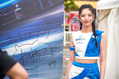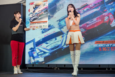 そして第6戦の会場となるスポーツランドSUGOからも、SUGOレースクイーンの春霞さんが来場し、サーキットの魅力をアピール。ステージの後のフォトセッションも行われ、多くのファンが華やかなレースクイーンたちとの交流を満喫していました。