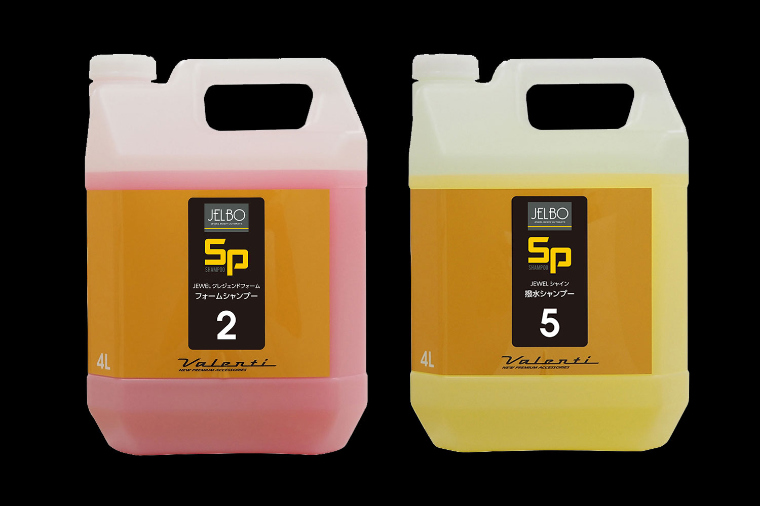 JELBO Vのカーシャンプーシリーズには、大容量の4リットルモデルが追加リリースされた。SP2 JEWELクレシェンドフォームなら普通車約200台分、SP5 JEWELシャインなら普通車約96台分に相当する量をオトクに購入できるようになった。