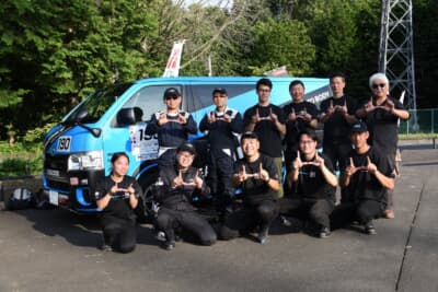 トヨタ車体といえば1995年から自社チーム「TLC(チームランドクルーザー)」を立ち上げ、ダカールラリーの市販車部門に毎年参戦しているが、このチームは全くの別物で、社内活動といったところだ。ハイエースのデビュー戦はグラベルラリーとなった2023年6月のTGRラリチャレのニセコ戦。クルマが仕上がったのですぐに参戦を開始。渋川戦で2戦目となるが、ターマックラリーは初めての挑戦となる。