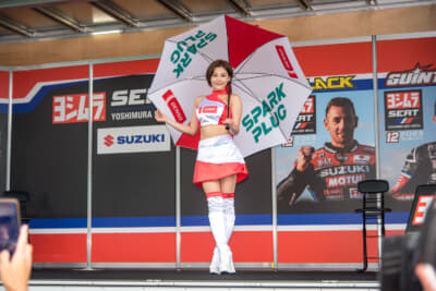 さらにレースを華やかに彩るレースクイーンも登場。Yoshimura SERT Motulを応援する2023 DENSOレースクイーンの山本ゆうさん、そして2023 WedsSport Racing Galsのレースクイーン南 真琴さん&日南まみさんによるフォトセッションも開催されて盛り上がりました。