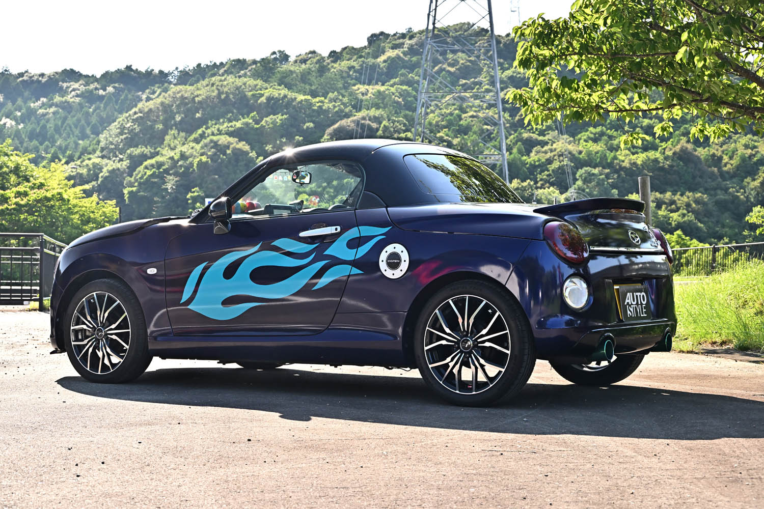 真夏日となった2023年6月17日。静岡県にある小笠山総合運動公園エコパで「第1回TCM」が開催され、約200台の新旧コペンが集まり大盛況でした。その200台の中から気になった車両をピックアップして紹介します。今回は、紫のカラーと炎のバイナルが目印の“あいうた”さんのコペン。TCM(T=Tシャツ、C=コペン、M=ミーティング)の主催者でもあります。クルマのことはもちろんオフ会主催についてもお伺いしました。