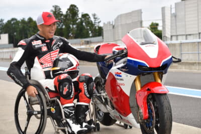 伝説のライダーとして、バイクファンにはおなじみの青木三兄弟の次男、拓磨選手。1998年にGPマシンのテスト中の事故によって脊髄を損傷し、車いす生活を余儀なくされている。その拓磨選手に「もう一度バイクに乗ってもらいたい」と行われた『Takuma Ride Again』で実際に走りを披露してから4年の月日が流れた。
