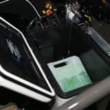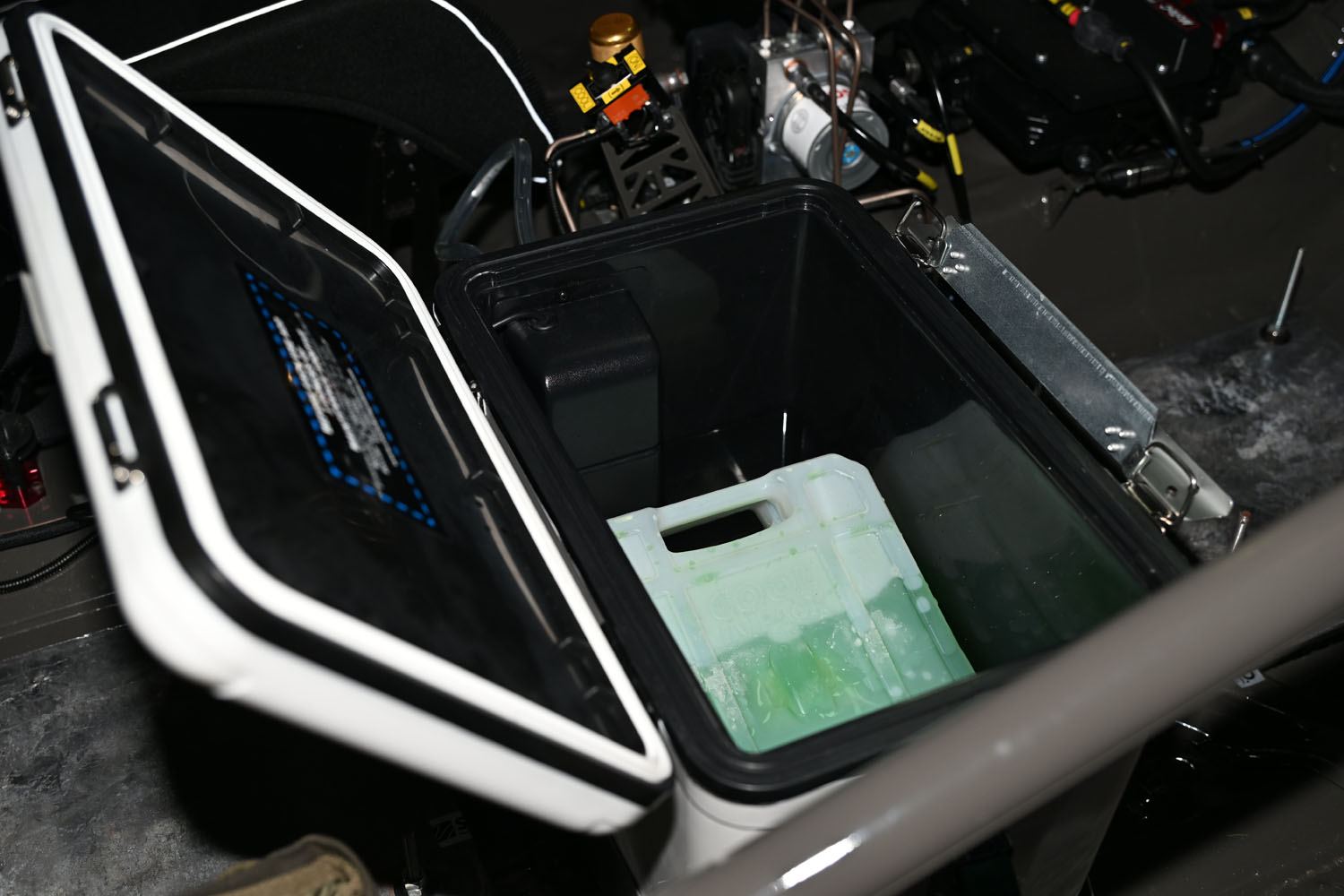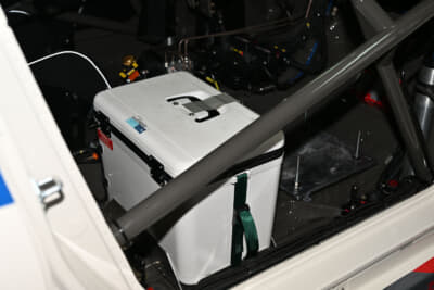 なかでも、最もポピュラーなアイテムが「クールスーツ」にほかならない。クールスーツとはレーシングスーツの下に着用する冷却用のウェアで、生地内にパイプを通し、そのパイプに冷却水を循環させることでドライバーの体温をコントロール。冷却水は室内に設置されたクーラーボックスに搭載されており、主に氷や冷却剤で冷やされた水が収納されている。
