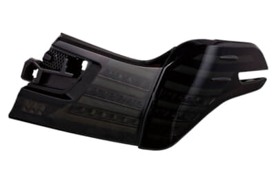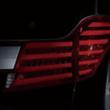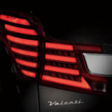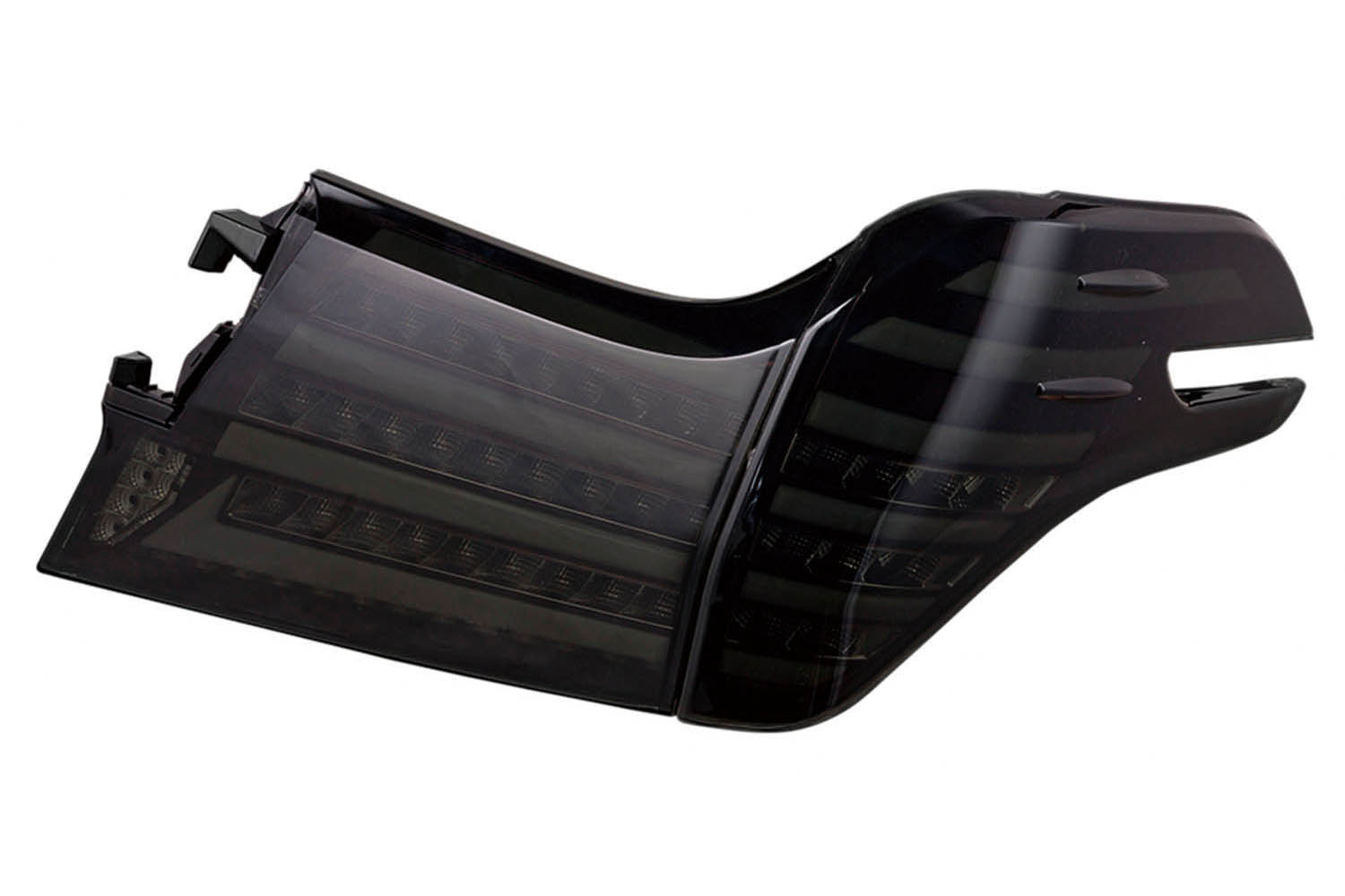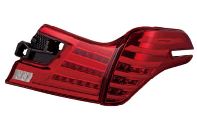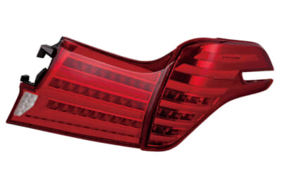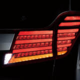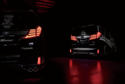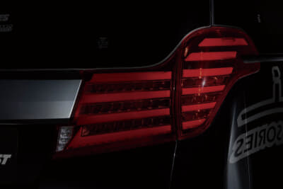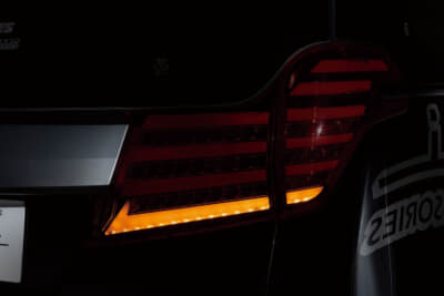 アルファード用とヴェルファイア用でそれぞれ2色ずつを設定している。レッドレンズは華やかでインパクト大、ライトスモークは精悍な印象だ。純正より点灯面積が拡大している点も見逃せない。極太のライトバーはムラのないキレイな均一発光。純正では光らない車体側面までLEDライトバーが伸びており、点灯面積も広く視認性も高いのが特徴だ。