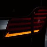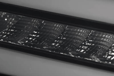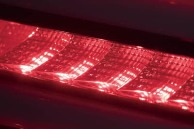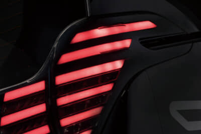 気になる点灯パターンを解説しよう。12本のLEDライトバーはポジションで点灯し、バーの間に間接照明式のブレーキライトが敷き詰められている。一番下のL字部分はポジション点灯で赤に、ウインカー作動時にアンバー発光する2色発光式だ。