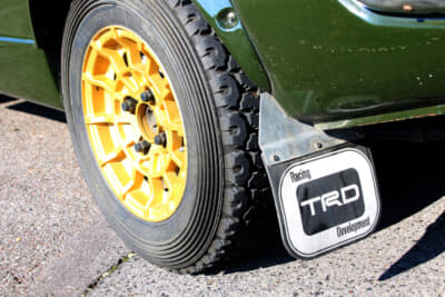 「当時は、まだパーツがあったんですよ。畑の中に放置されていましたが、エンジンは生きていました。ラッキーでしたね。年上の友人が当時モノのマッドフラップを譲ってくれて、それをきっかけとして当時のラリー仕様に近づくように車高を上げてみました。当時モノのマッドフラップはなかなか流通していないので、もしかしたら年上の友人はTE27型のレビンかトレノを駆り、ラリーに本気モードで参戦していたのかもしれませんね」