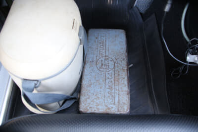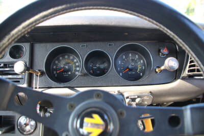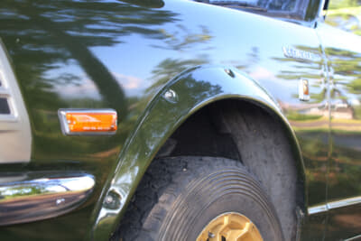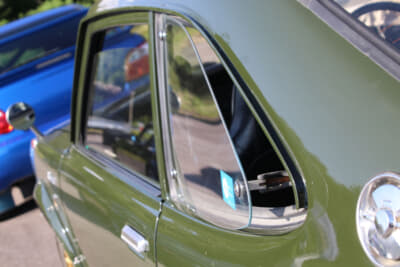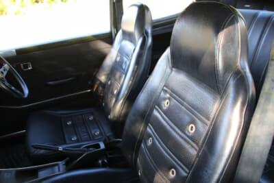 リアのガラスが割れているなど各部がイイ感じにヤレていたので、ボディの鈑金を含めてレストアに1年ぐらいを費やしたそうだ。30年前の話なので新品のリアガラスが出てきて、灯火類の交換用レンズが箱に入ったまま車内に入っていたりと、部品が無くて苦労するようなことにはならなかったらしい。