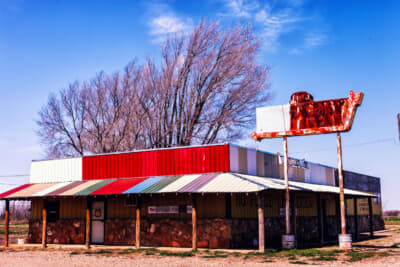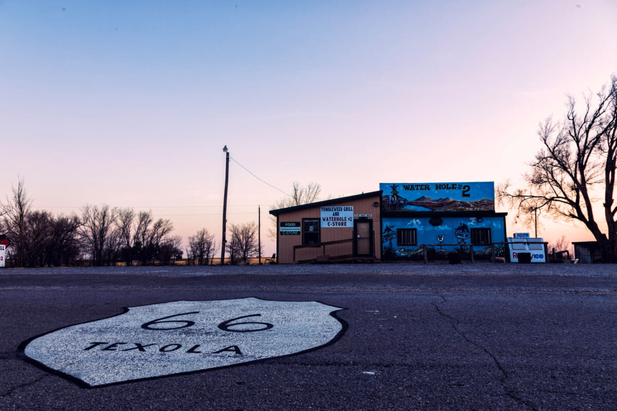 長かったオクラホマ州のルート66もそろそろ終わり。次のテキサス州からは風景がガラリと様相を変え、いかにも西部らしい壮大かつ雄大な自然を味わえる。その前にぜひとも立ち寄りたいのが、州境にある小さな街、テキソーラだ。名前でピンときた人もいるかもしれないが、「テキソーラ」はテキサス+オクラホマに由来。ただし州としては今も昔もオクラホマで、街のはずれに州境を示す看板がある。