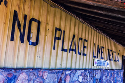 私がテキソーラを知ったのはDVD『アメリカの母なる道 ルート66』で、発売が2001年なので現地の取材はもっと前じゃないかと思われる。壁に大きく「NO PLACE LIKE TEXOLA(テキソーラのような場所は他にない)」と書かれたレストランが印象的で、初めて訪れたときは真っ先にそのお店に行ってみたものの閉業からだいぶ年月が過ぎた雰囲気。壁の文字だけは映像で見たままなのが、逆になんとも物悲しい気分を駆り立てられた。ただし隣にはダイナー兼ギフトショップがあり、街に残った人々や旅行者が利用しているようだ。