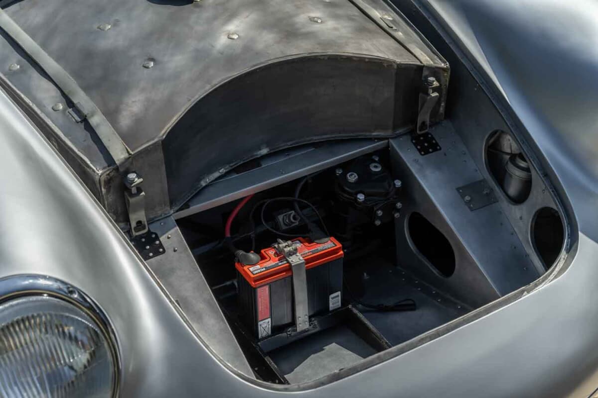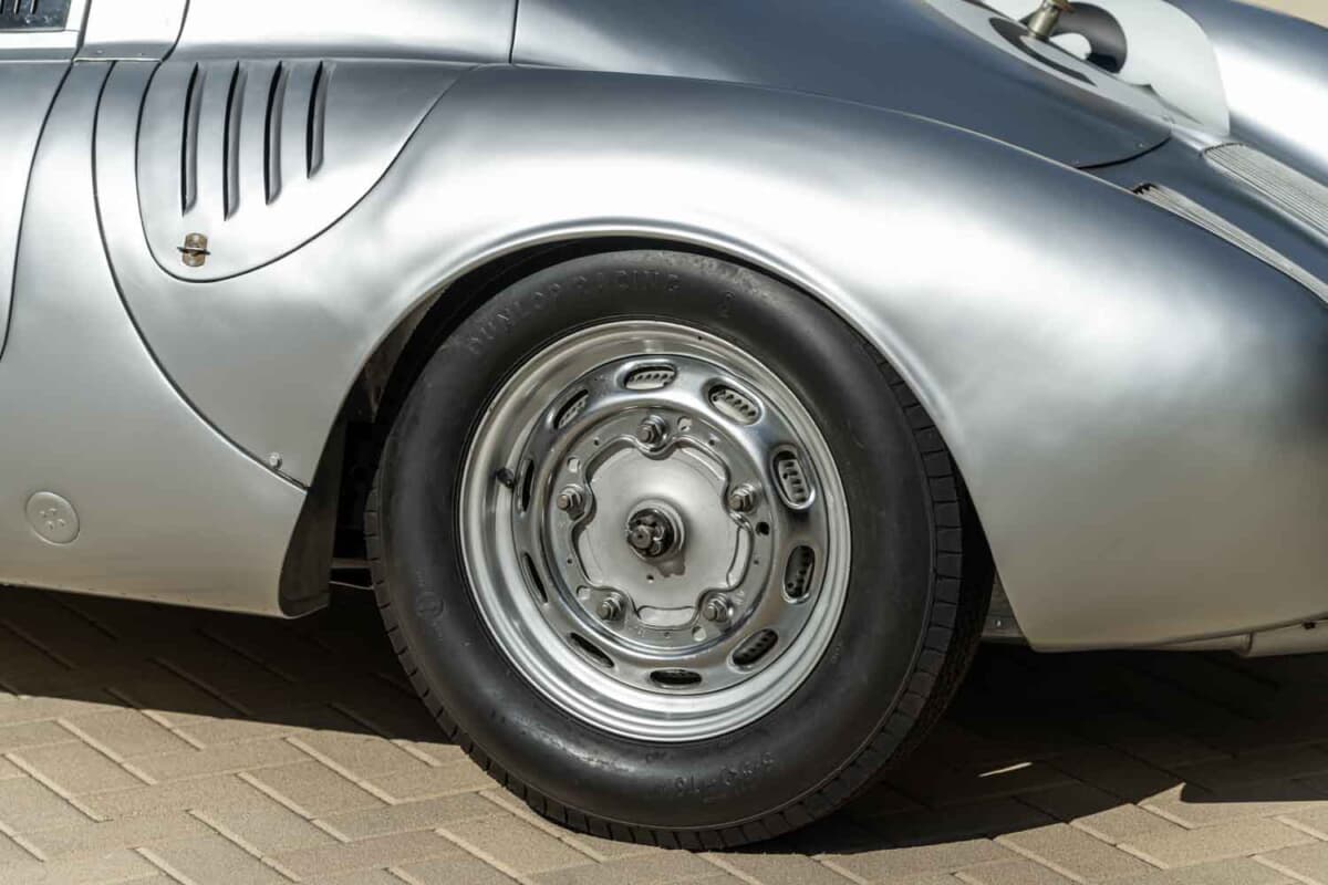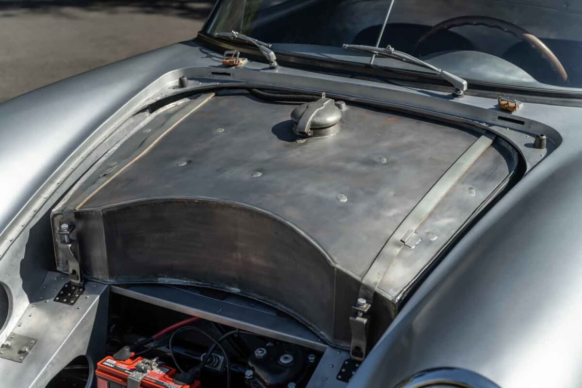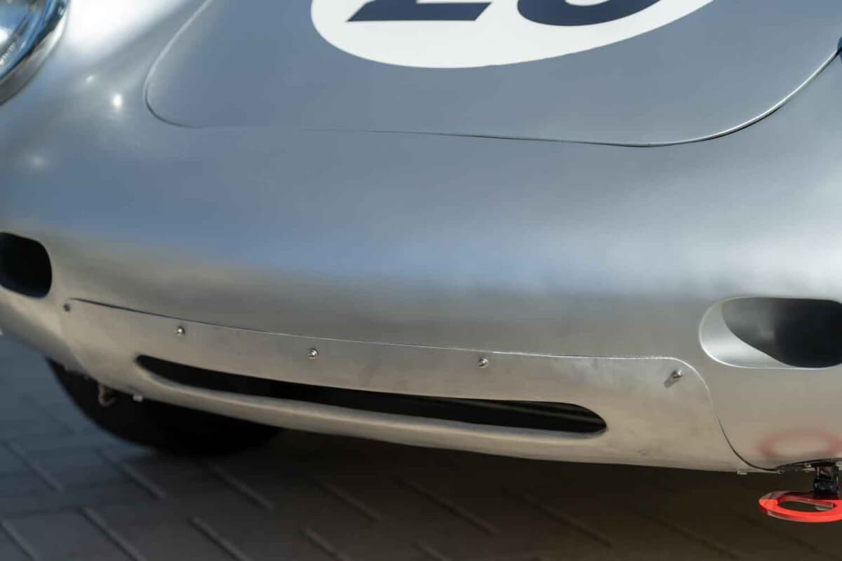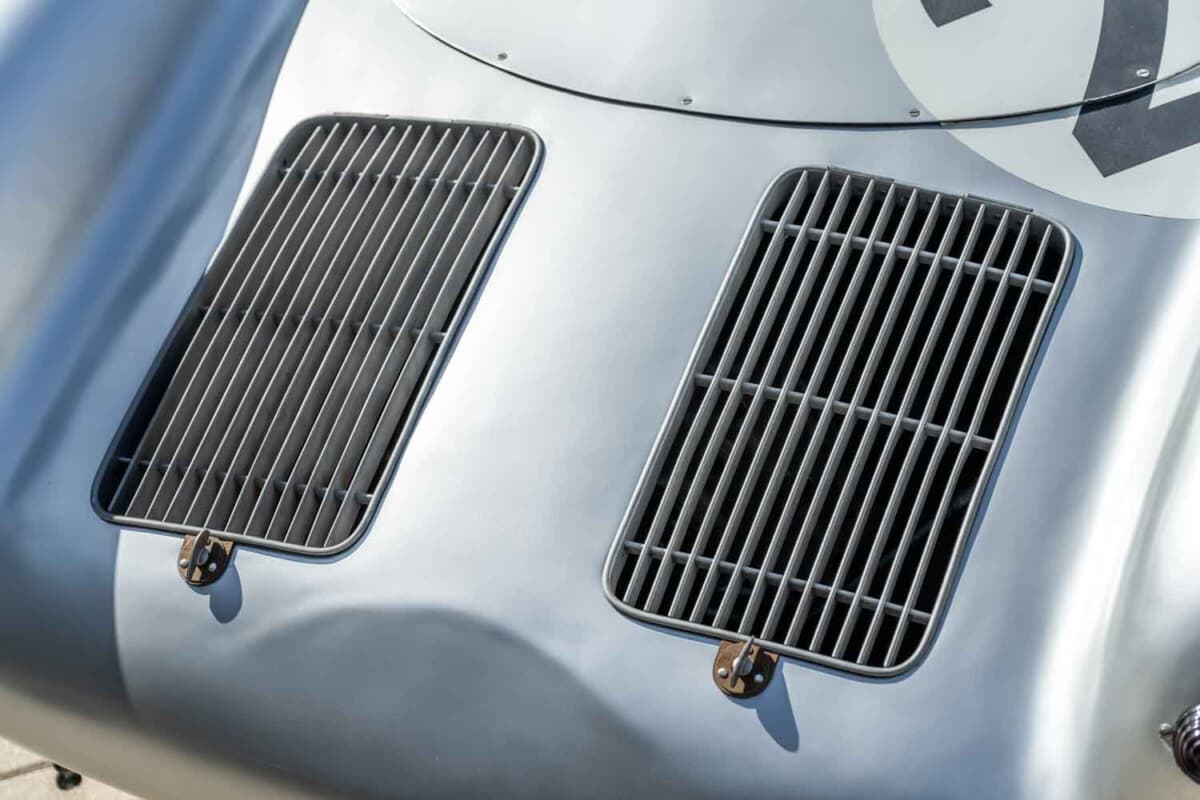 1953年に登場した「550スパイダー」の次世代モデルとして開発された550Aは、ポルシェ初となった軽量な鋼管スペースフレーム、完全独立サスペンション、5速トランスアクスルなど数え切れないほどの改良を実行。550スパイダーよりも軽量化を図ると同時にフレーム剛性も大幅に向上させたことで、超軽量合金のボディカウルの装着を可能にした。