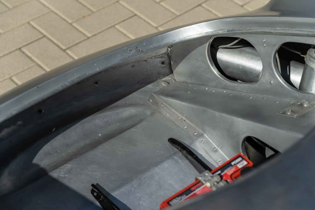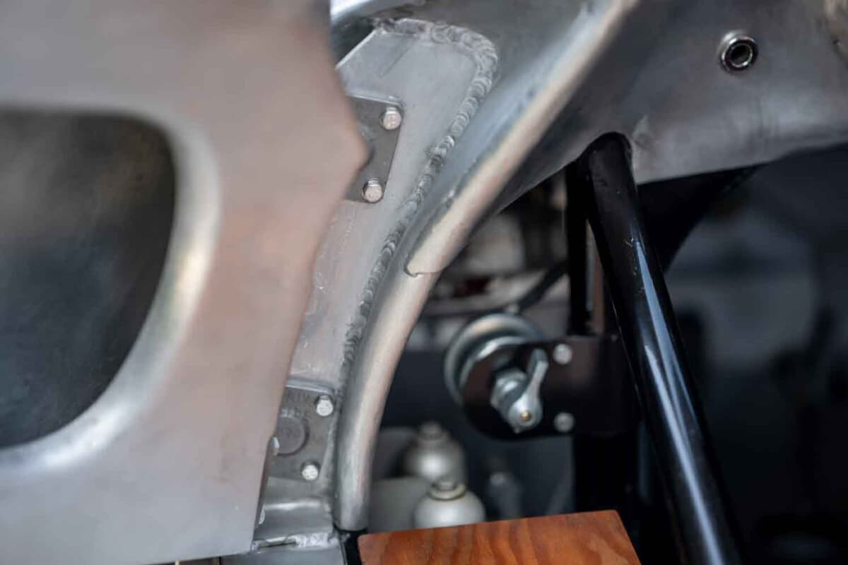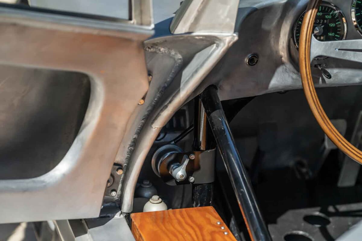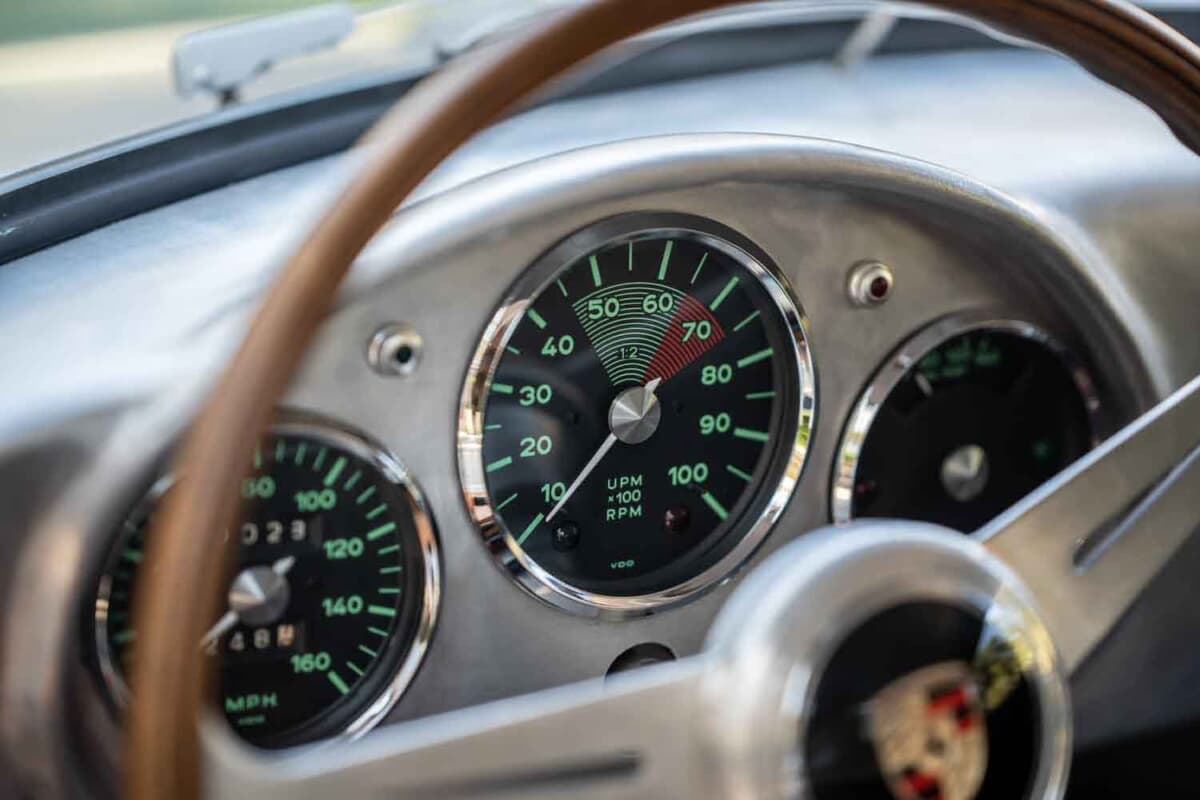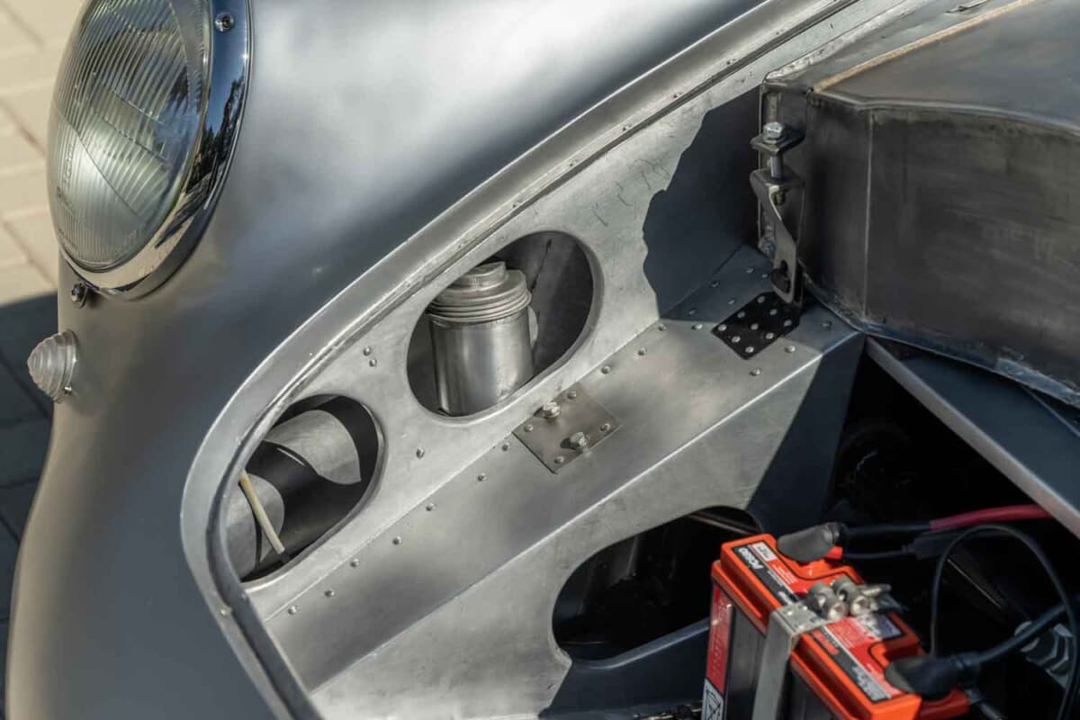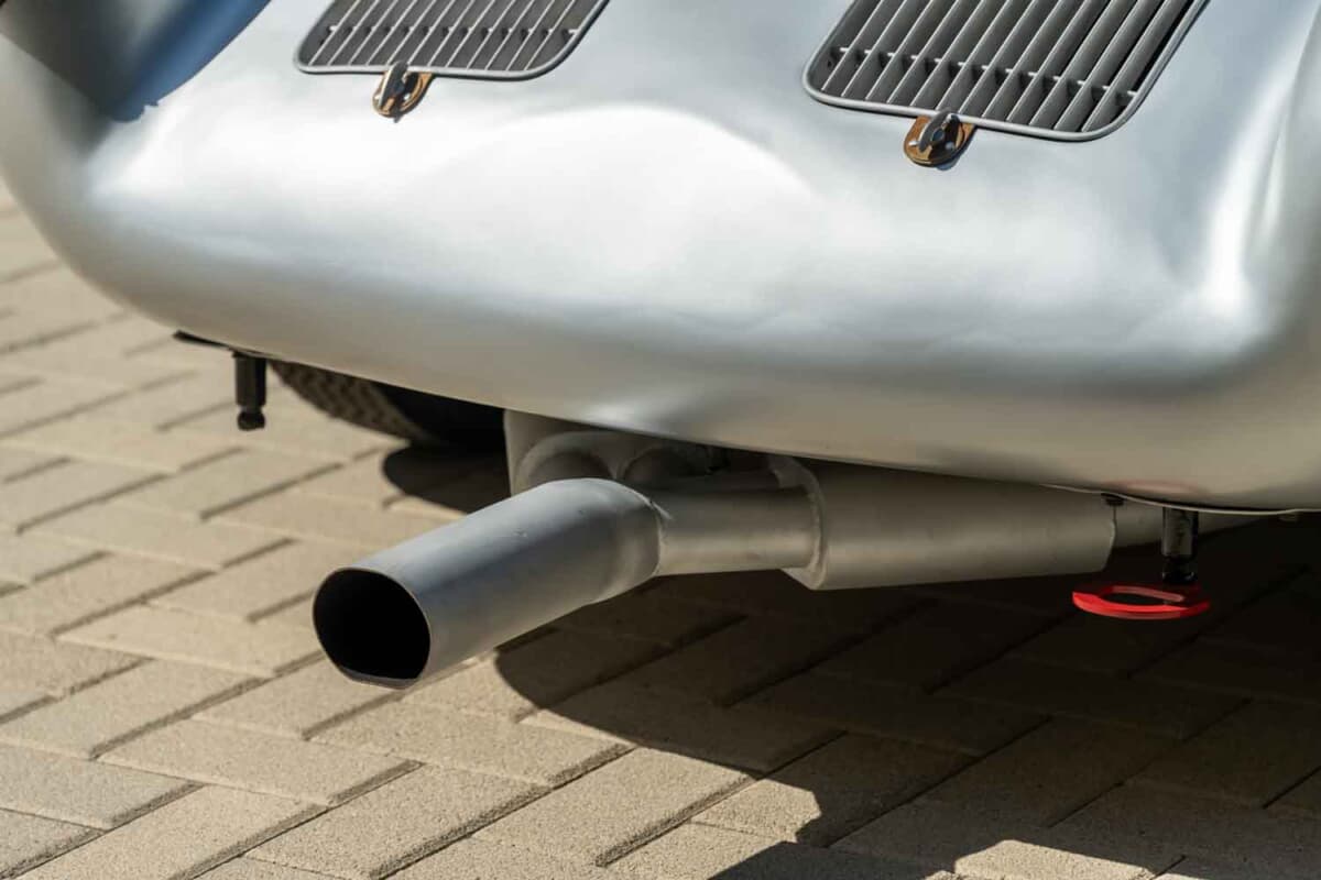 1953年に登場した「550スパイダー」の次世代モデルとして開発された550Aは、ポルシェ初となった軽量な鋼管スペースフレーム、完全独立サスペンション、5速トランスアクスルなど数え切れないほどの改良を実行。550スパイダーよりも軽量化を図ると同時にフレーム剛性も大幅に向上させたことで、超軽量合金のボディカウルの装着を可能にした。