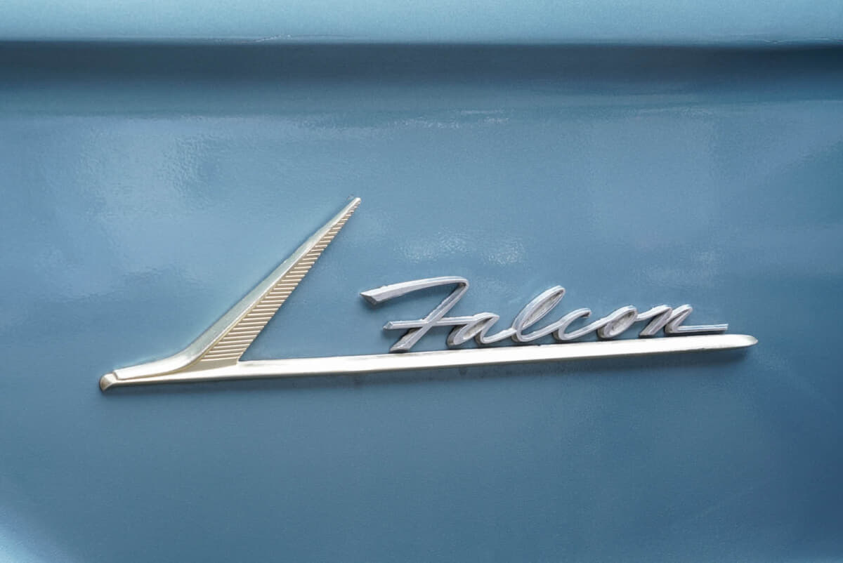 劇中の製造ラインに並んでいたファルコンのボディカラーは、「マスタング」や「コブラ」にもあるバイキングブルーという定番色であるが、都合よく同じカラーのファルコンがなかったのだろう。