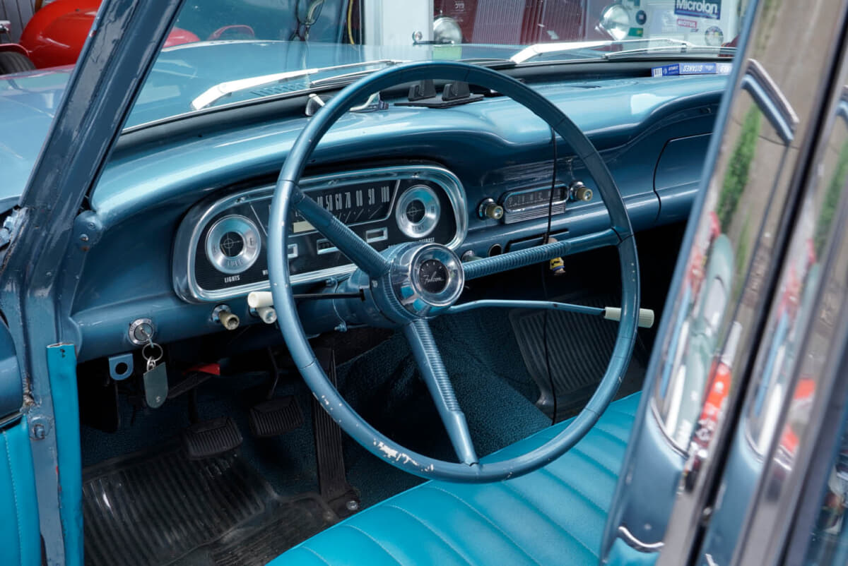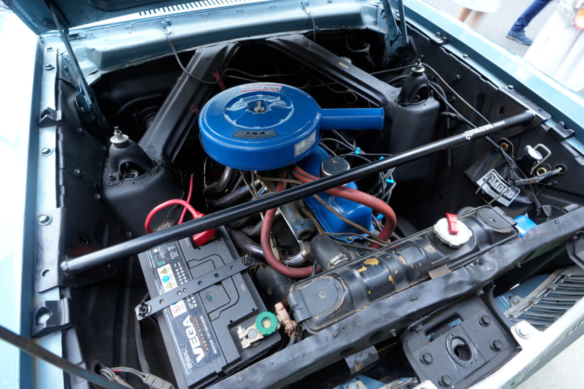 「映画『フォードvsフェラーリ』はご存知ですよね? じつは、あの映画の中でエンツォ・フェラーリが“醜いクルマだ”とつぶやいたとき、生産ラインに並んでいたのはフォード ファルコンでした。このクルマは映画で実際に使われたファルコンなんですよ」