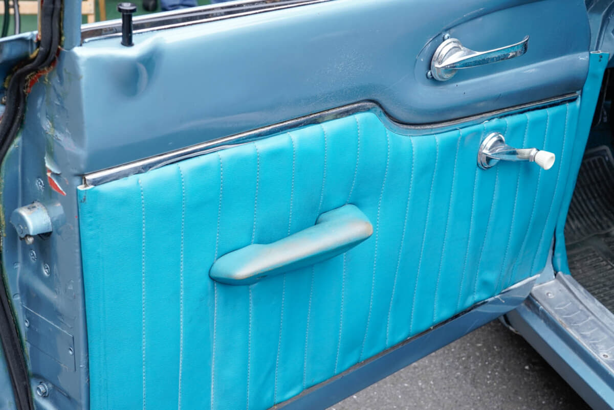 「ボディはニューペイントですが、あちこち雑なマスキングの隙間から元色の赤が覗いてますし、何より強烈なのは、内装も新品に張り替えられているんですけど、もともと付いていたルームランプも外さないまま、上から張り替えていてルームランプが突起になって埋もれているんですよ。もう笑っちゃうレベルですけど、目的は映画撮影のためと考えたら怒れませんね」