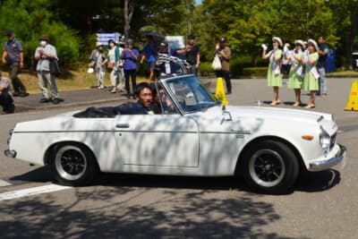 このイベントの参加車両は国籍を問わず1974年以前に生産されたクルマが対象となる。今回のクラシックカーレビュー ITOIGAWAの参加車両は130台。そのうちおよそ2/3となる87台が国産車だったが、さらにその中でも総勢27台と一大勢力を占めたのが、新旧「スカイライン」や「フェアレディ」をはじめとする日産車たちである。