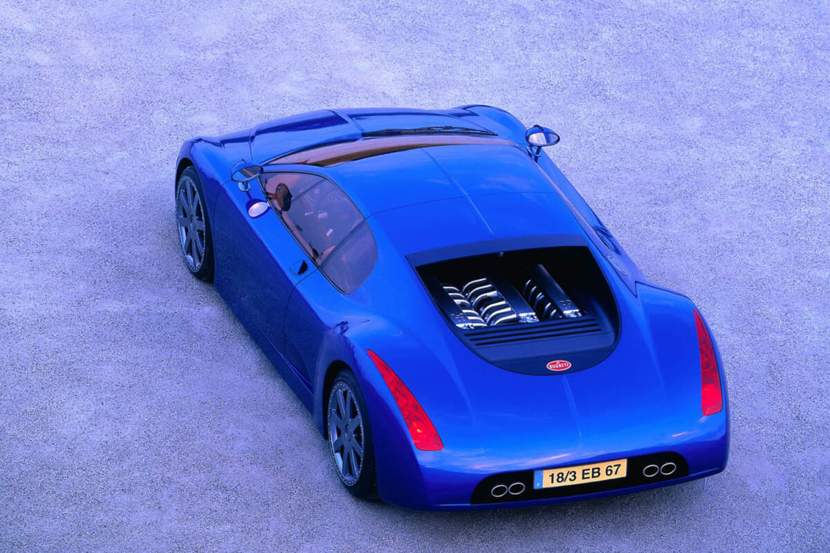 1998年、パリ・サロンにて発表された新生ブガッティの第1作「EB118」は、イタルデザイン社との共同開発。アルティオーリ時代に幻のまま終わった「EB112」の基本設計をベースに、W型18気筒エンジンをフロントに搭載し、4輪を駆動する贅沢きわまりない2ドア・クーペとされた。
