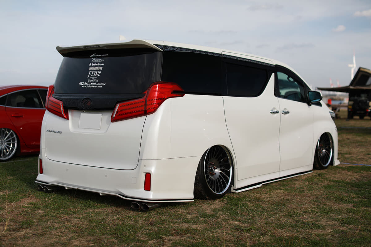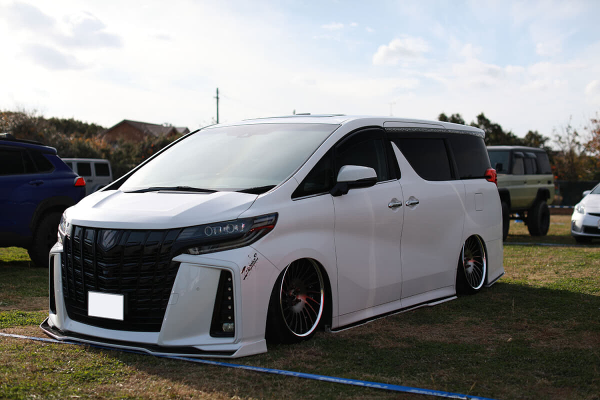 スポーツカーやオフローダーに混じって、激低なローダウンスタイルで目立っていたのが、木村さんの愛車、トヨタ「アルファード」(3代目 30型)だった。5年前に新車で購入。二人目のお子さんが生まれたことがきっかけという、家庭を守る父親としては、よくある一般的な理由だ