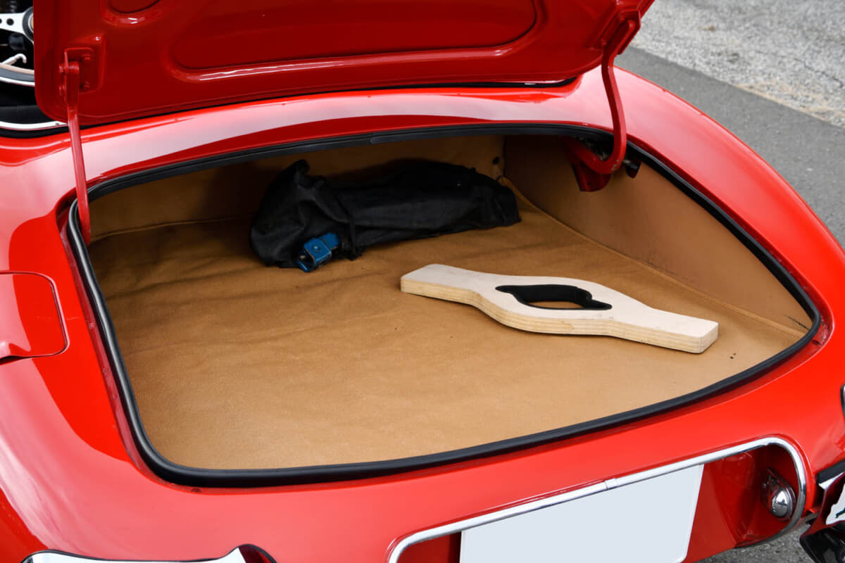 • リアのトランクルーム。ホイールのセンターロックを回すための道具も積まれている
