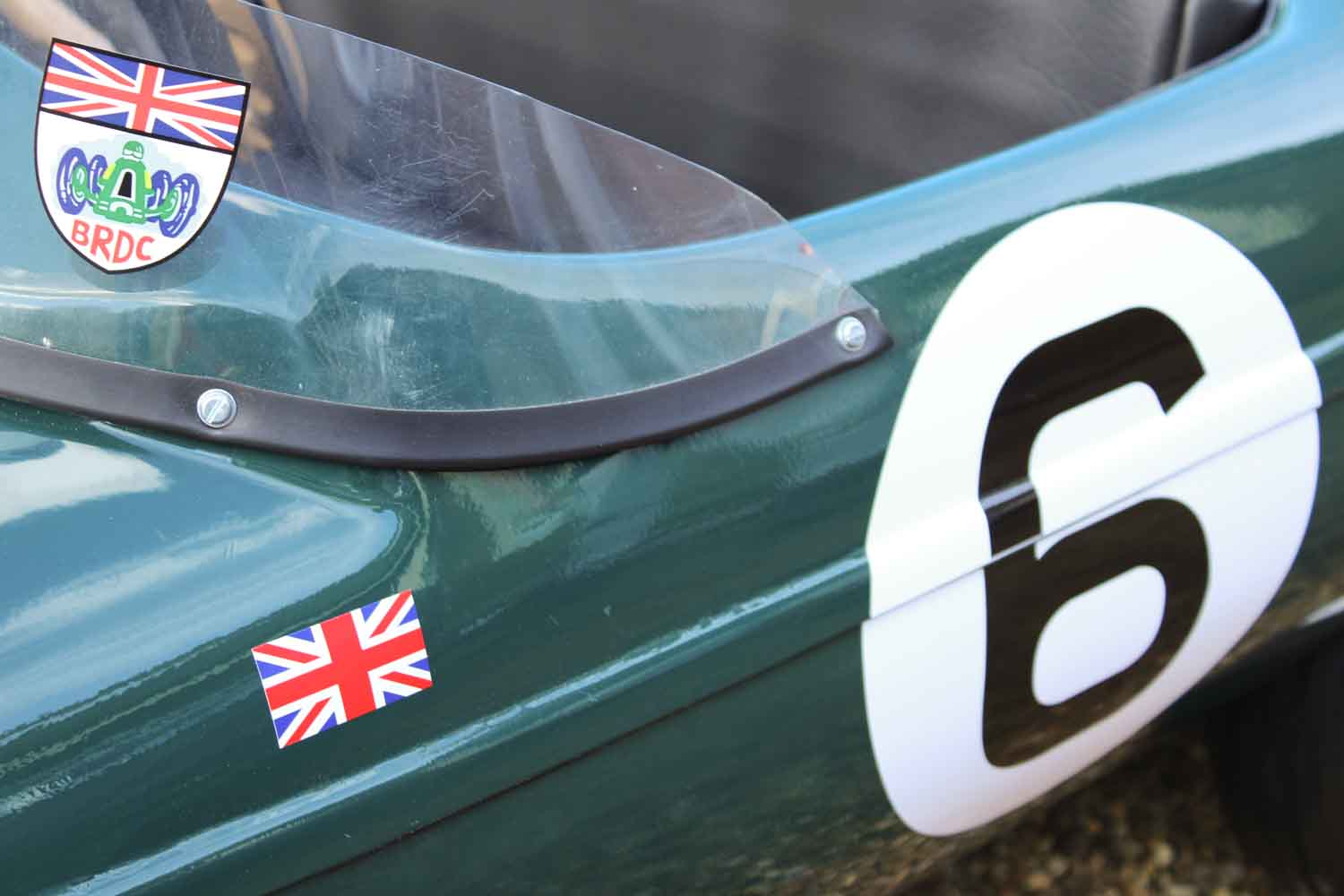そのほかにも当時モノのピフコ社製ホーン、エンジンへのアクセスを容易とするヒンジ付きトランクリッド、レザーのトランクストラップ、ビニールレザーのクッションシート、オリジナルのスピードメーターデカール、「ジャガー」、「BRDC」にくわえて「ユニオンジャック」のデカールなどでリアリティを向上させている。
