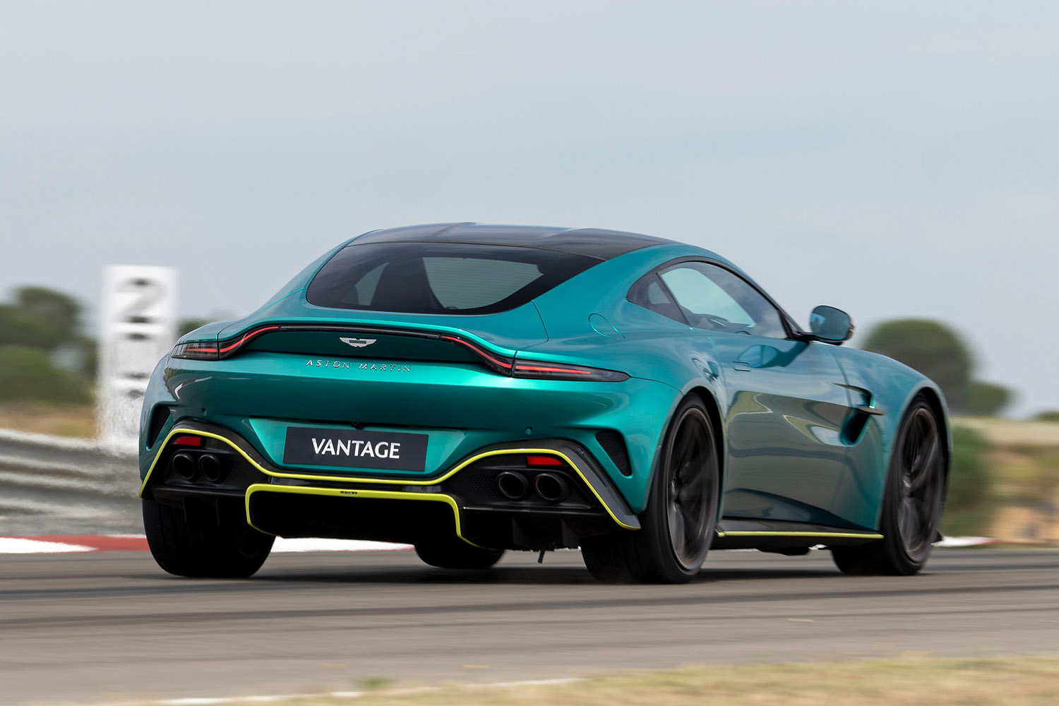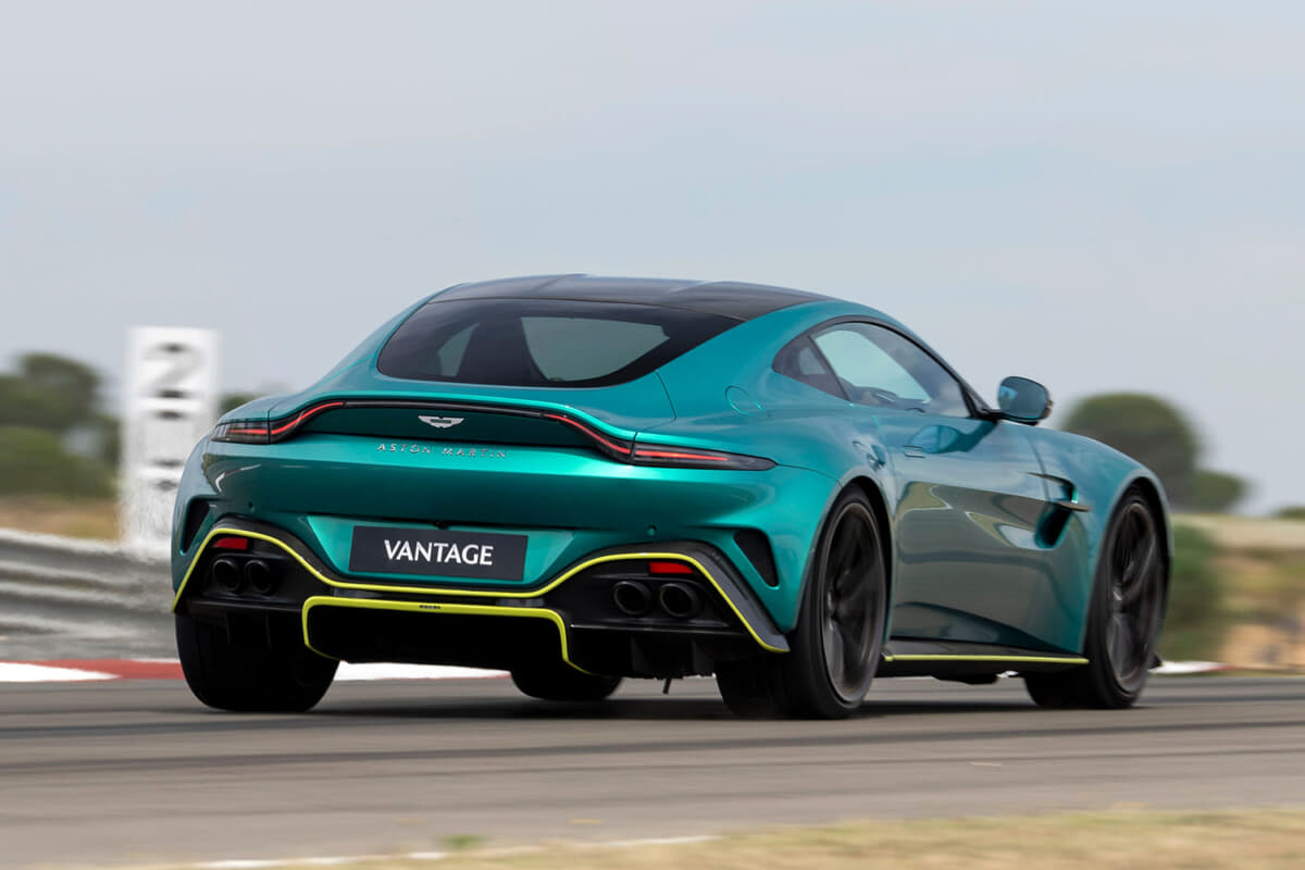 • アストンマーティン ヴァンテージ:サイドベントと大径クワッド・エキゾーストテールパイプを組み込んだリアバンパーもより幅広に