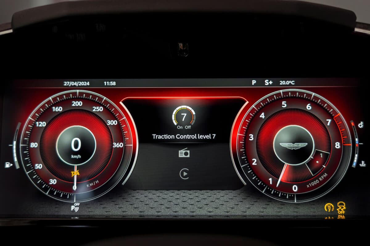 乗り込んでみれば外観のワイルドさとは裏腹にラグジュアリーな仕立てのインテリアだ。ダッシュボードまわりはDB12とおなじような機能の配置で、嬉しいことに物理スイッチを可能な限り残しつつ、全体としては非常にモダンに仕上がっている。着座位置も下がったようだ。