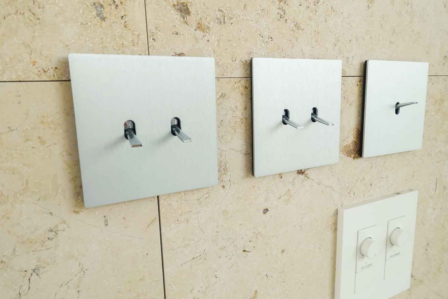 今回はこの土地のオーナーが使用する一画を見せていただいた。オーナーが英国車好きなのか、窓枠などがアストンマーティンのレーシングカラーで統一されていることや、電気などのスイッチ類がトグルスイッチとされている。そのオン/オフの感触は何とも言えず気持ちが良かった。