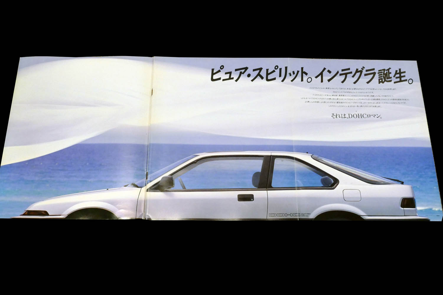 初代「クイント インテグラ」というと何をおいても思い出すのは、1985年2月のデビュー当初にオンエアされた最初のTV CMだ。見覚えがある方ならおわかりだと思うが、映像は長身のモデルの男子2人(後に女子2人、男女1組のバージョンへと続いた)がクイント インテグラに乗って海辺を走るじつに爽快なシーン。楽曲は山下達郎の「風の回廊(コリドー)」で、これが映像にじつにマッチしていた。