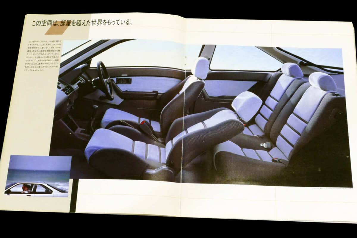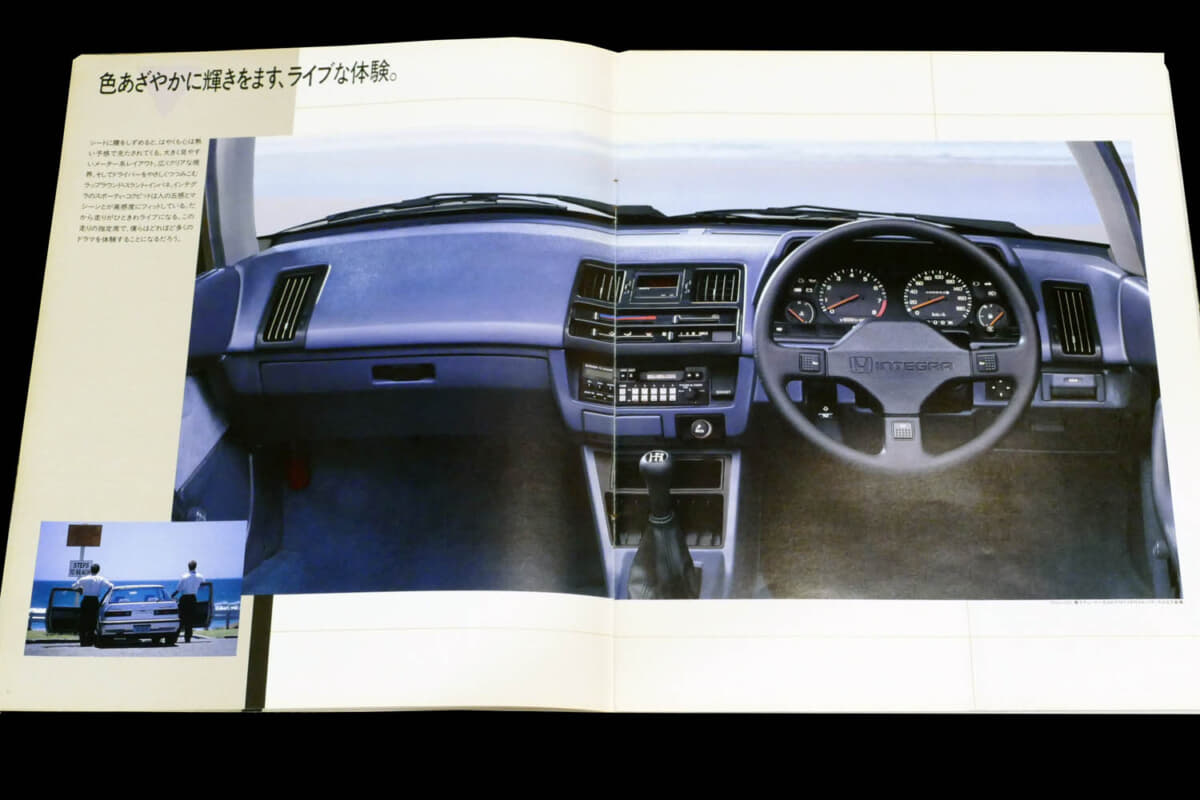 「ピュア・スピリット。インテグラ誕生」、「それは、DOHCロマン」。カタログを開くとそんなコピーが目に飛び込んでくるクイント インテグラは、見るからに斬新でスタイリッシュなクルマの印象だった。とくに当時のプレリュード(2代目)と同様にリトラクタブルヘッドランプを採用した低いノーズは、それまでの実用車然としていたクイントとは打って変わって、スペシャルティカーと呼んでもいいほど。当時のホンダ車でいうと、前述のプレリュードのほか、「ワンダー シビック」から派生した「バラードスポーツCR-X」など、魅力的な個性派が揃っていたが、クイント インテグラも間違いなくその一角に肩を並べるクルマといえた。