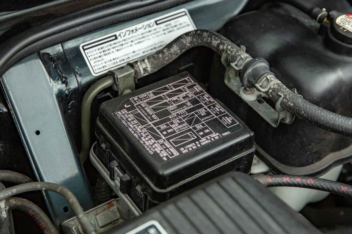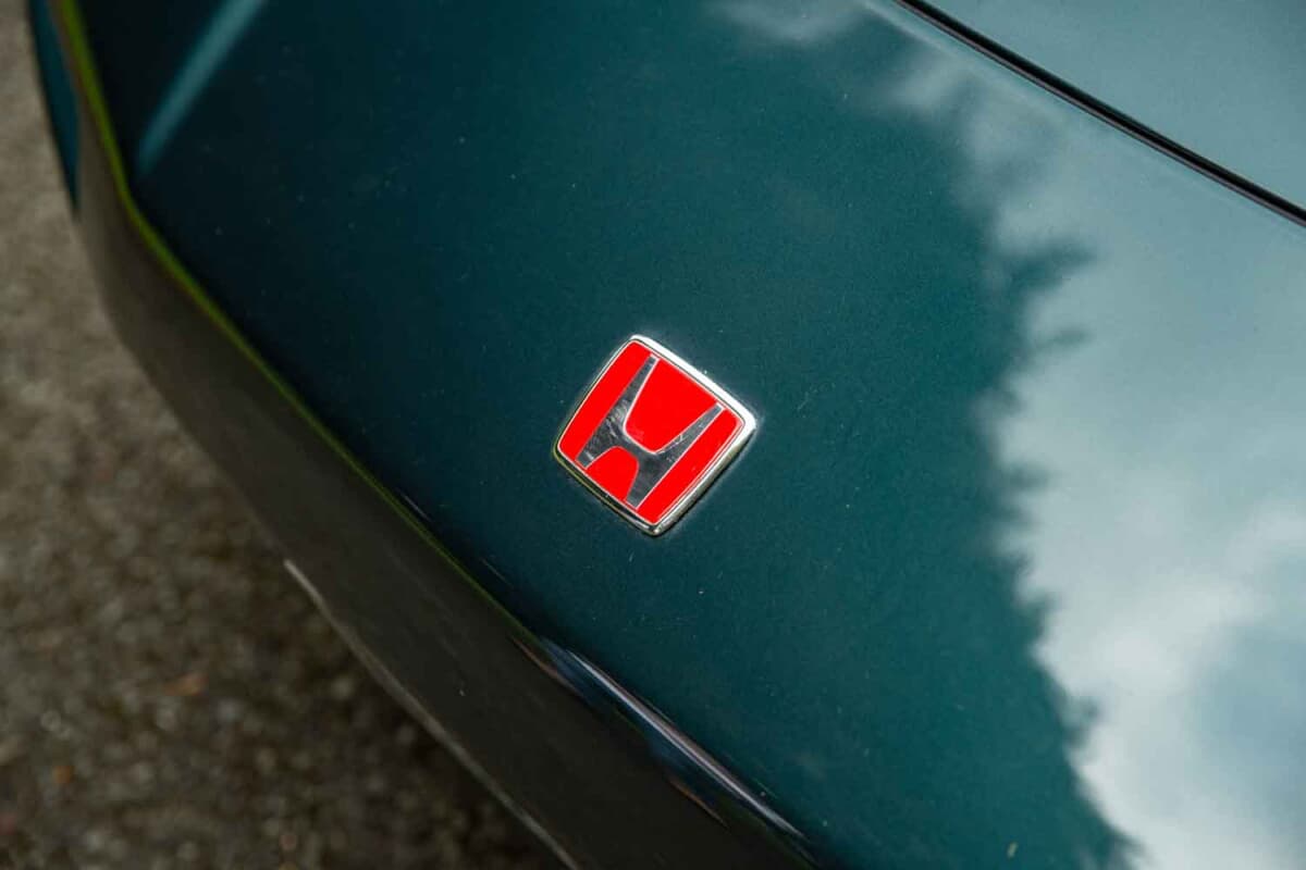 タイプRでは軽量化も重要な開発テーマだった。専用装備としては、エクステリアではアルミメッシュのエンジンメンテナンスリッドや発泡ビーズ入り低比重SMC製リアスポイラー、大型テールパイプ、ハーフシェイドのフロント合わせガラス、フロントドアスカート等々が採用されたほか、R用の専用エンブレムも装備されている。前後のタイヤはフロントに205/50ZR15、リアに225/50ZR16を選択。組み合わされるホイールはENKEI製となる。