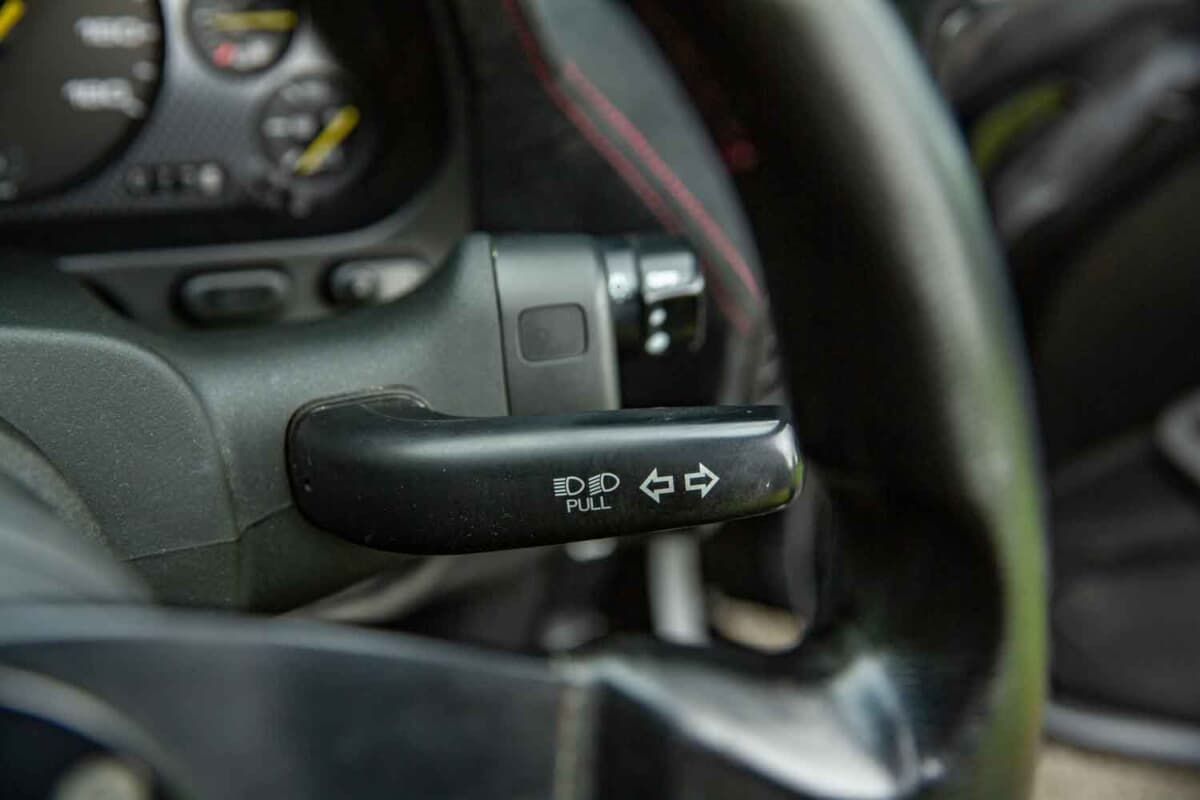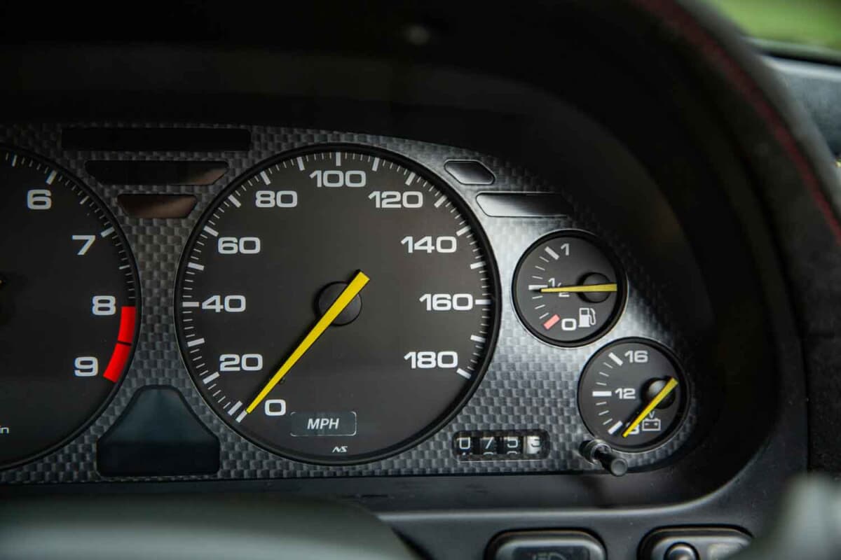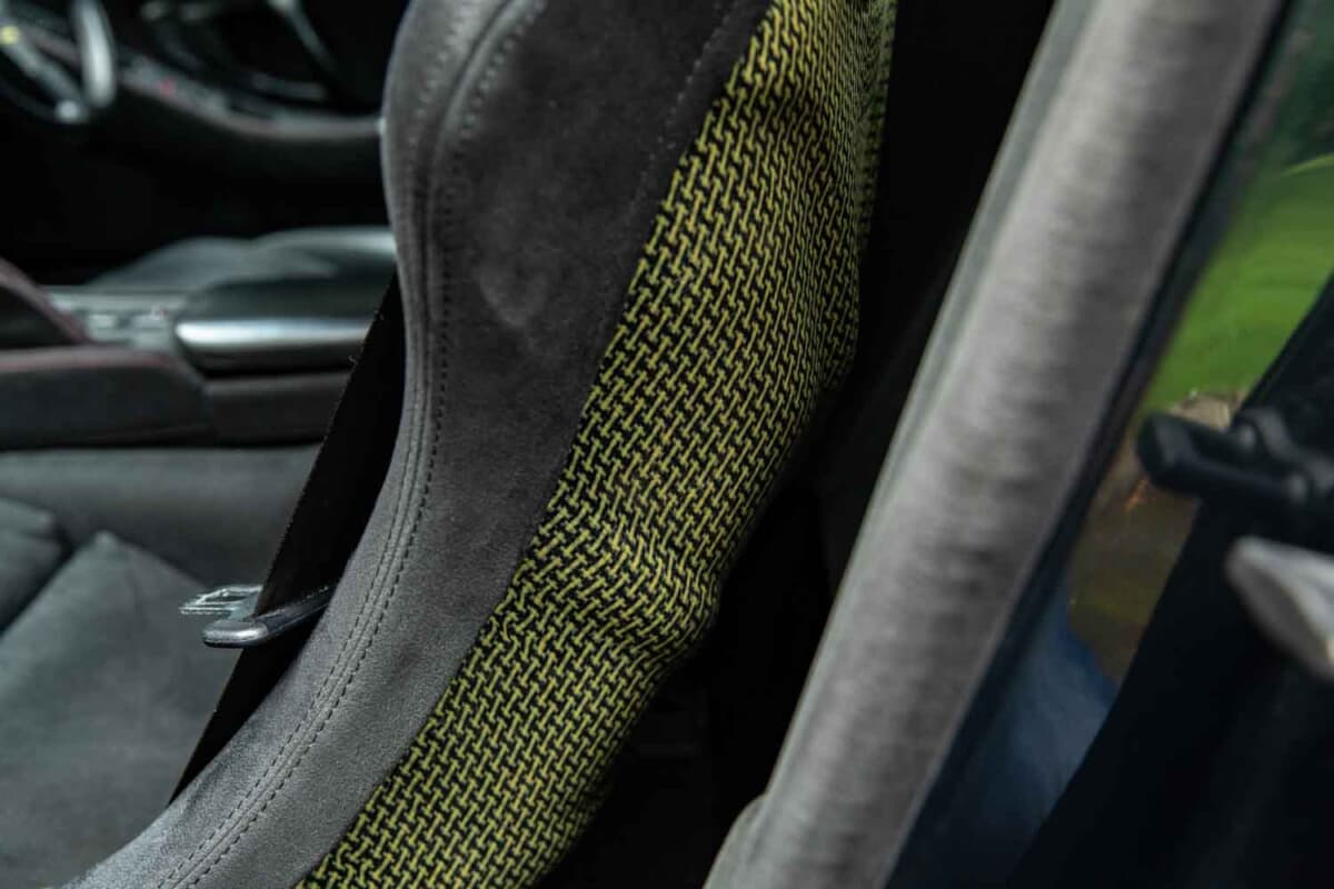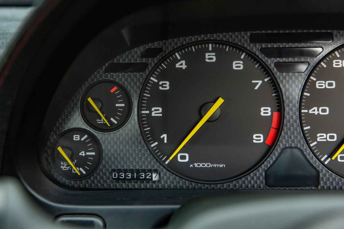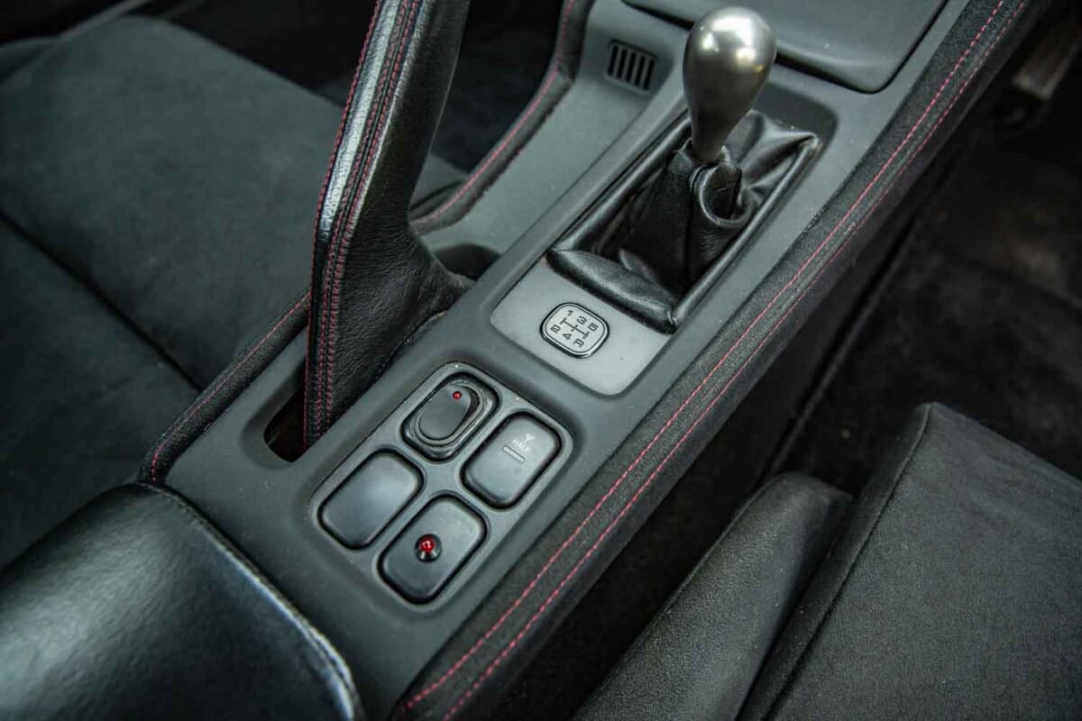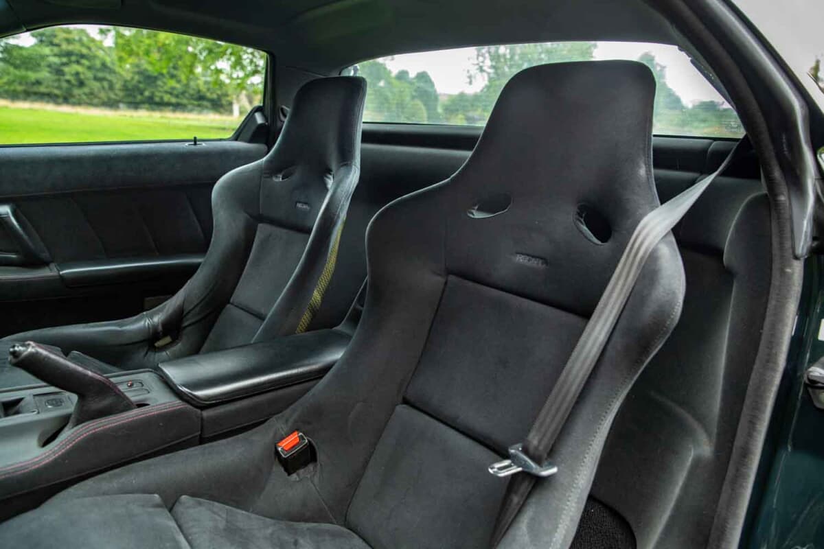 一方インテリアも、タイプRというスペシャルモデルの魅力に満ちあふれている。カーボン製のメーターパネル内には、イエローのニードルが鮮やかな6連式のメーターがレイアウトされ、ステアリングはMOMO製の革巻き。シートはレカロ製のカーボン・アラミド・コンポジットのフルバケットタイプだ。シフトノブはF1シェイプのチタン製削り出し。スウェード調の内装もこのモデルには良く似合う。サイドシルにはアルミプレートが備わっている。