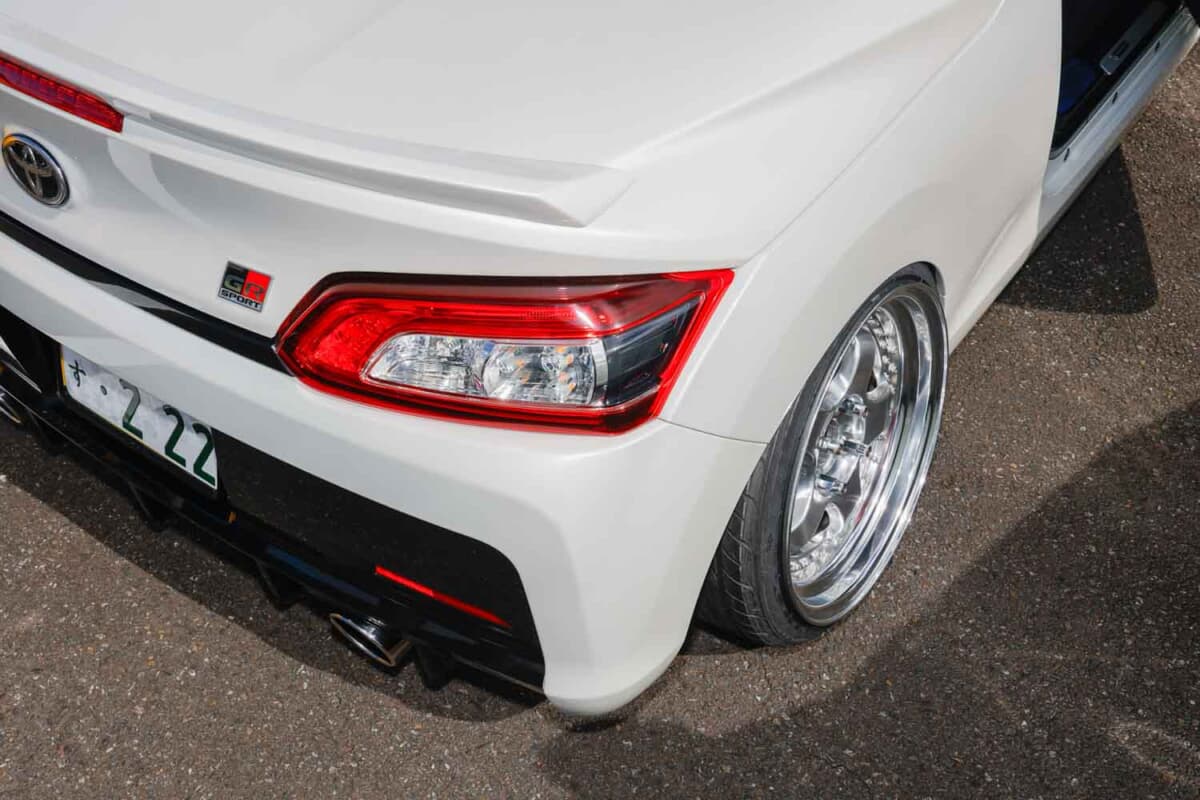 エアロパーツに関しては比較的シンプルで、ガレージ・ベリーのリップスポイラーのみ。ただし本来は未塗装な部分をペイントするなど、ひと手間を加えることでオリジナリティを追求する。