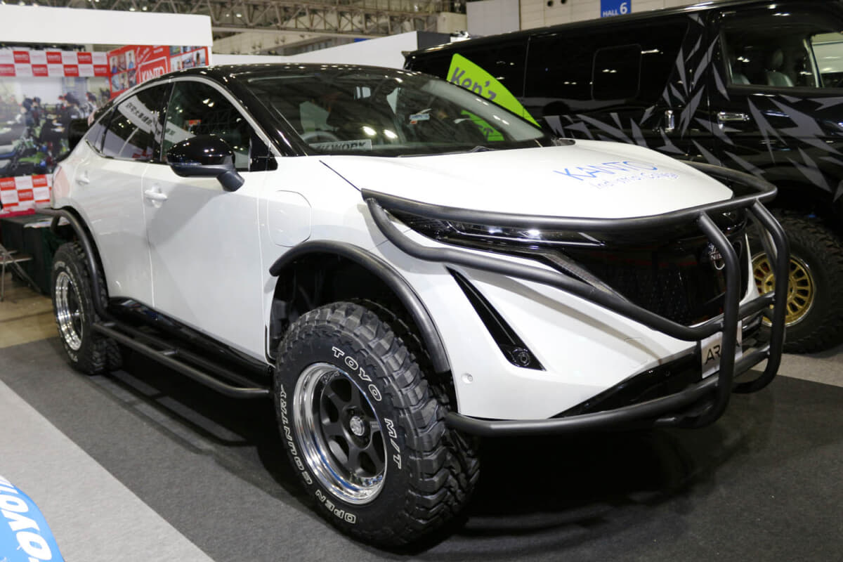 ありそうでなかった日産「アリア」のオフロード・バージョンを披露したのは、埼玉県鴻巣市に校舎を構える関東工業自動車大学校。ドレスアップ・SUV部門にエントリーしたカスタムカーの車名は日産「ARIA」で、本家の「ARIYA」とは差別化を図っている。