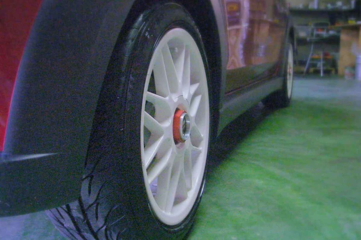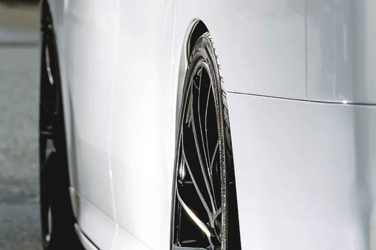 ホイールが車両外側に張り出した「ツライチ」を実現するには、ホイールスペーサーをかますのが手っ取り早い。タイヤがボディからはみ出してしまうと、保安基準違反になり、公道を走れなくなってしまうが、そのギリギリ手前=ツライチまで出すことで、視覚的な「すわり」がよくなり、スタイリッシュである種の迫力を演出することができる。これがホイールスペーサーを入れる第1のメリットだ。
