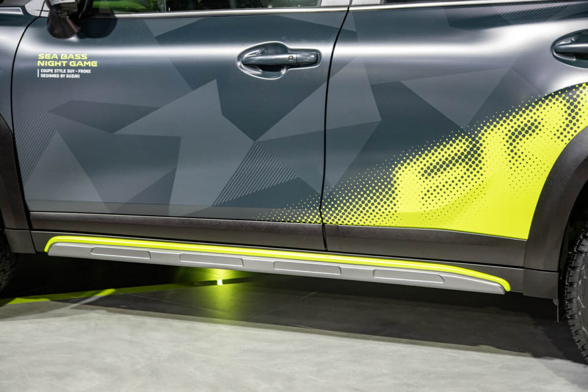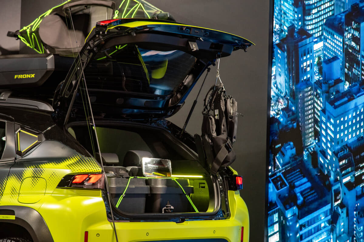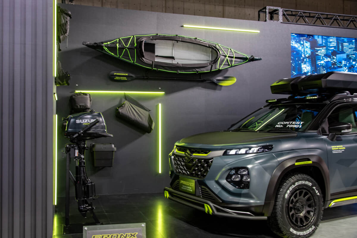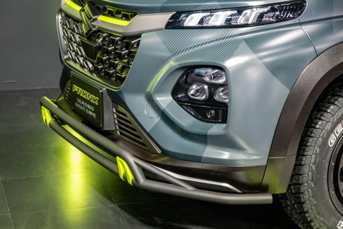 まず「フロンクス」のカスタマイズカーについてだ。こちらは「シーバスナイトゲーム」と名付けられている。その使用イメージは「都会で働く若者が、仕事終わりや週末にアウトドアで遊ぶ」といった感じだ。とくに仕事終わりに夜釣りにいくというイメージを、最も具体的にイメージしたようだ。